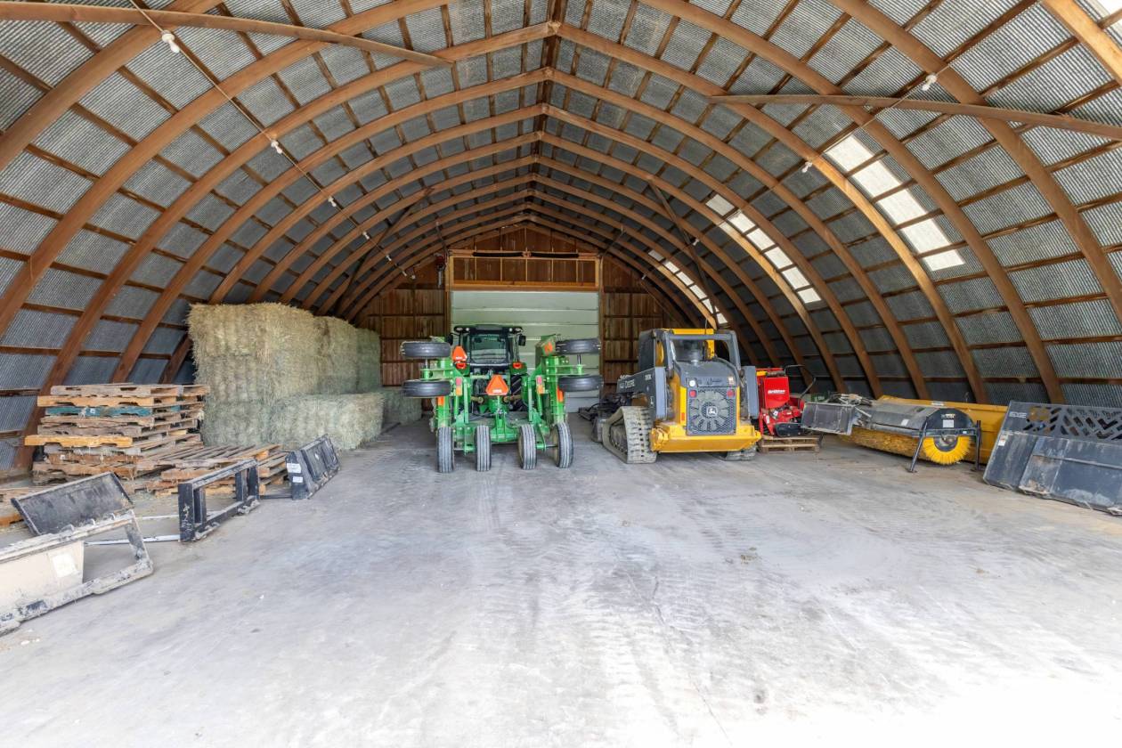 - Other Buildings include heated workshop/garage/barn (3200 sq ft) with attached drive through lean-to for additional parking/storage. Lean-to has RV electrical outlet. Also there is a Quonset-style barn (3750 sq ft} with new concrete floor, siding, & overhead garage doors with openers and a 3-sided metal storage shed (1600 sq ft).