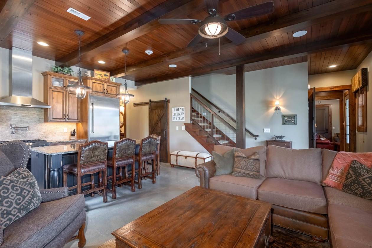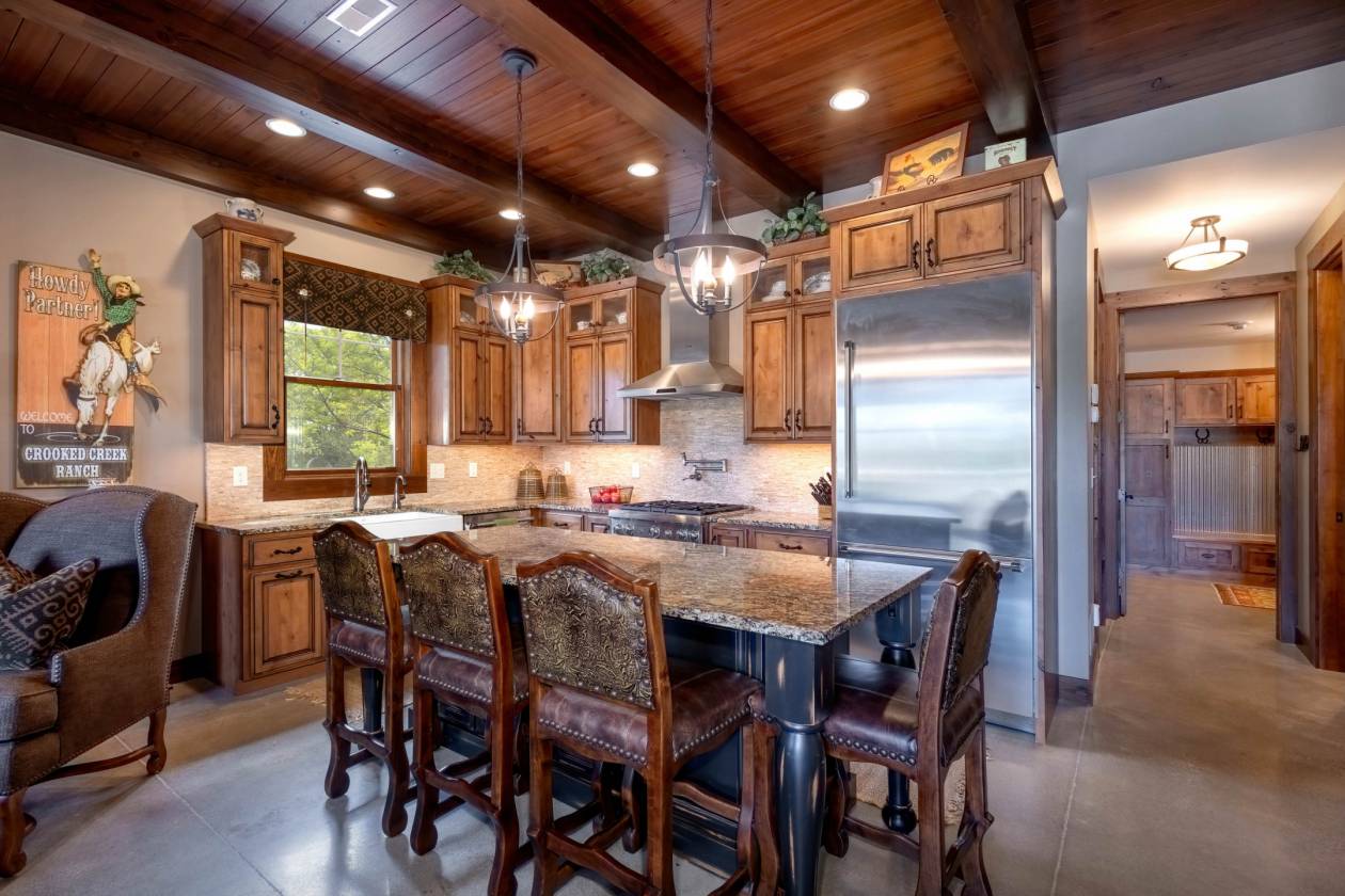 - Main building completed in 2014 consists of "barndominium" with attached horse stall barn and indoor/outdoor dog kennel. Reclaimed barn wood (from original on-site dairy barn) used for trim and built-ins throughout living quarters. Main level boasts radiant floor heat, full kitchen with reverse osmosis water and Thermador appliances, living room with gas fireplace, primary bedroom and bathroom (with dual vanity, toilet and shower), powder bath and laundry room with mudroom. The upper level is bunkroom style with 4 queen size built-in bunk beds, TV/game room and bunkroom style bathroom with 3 vanity sinks, 2 toilet rooms and 2 showers. Additional amenities include automatic driveway security gate, fiber optic lines for internet/cable, geothermal heating & cooling, two septic systems (living quarters & animals), and well water with "iron curtain" water treatment system.