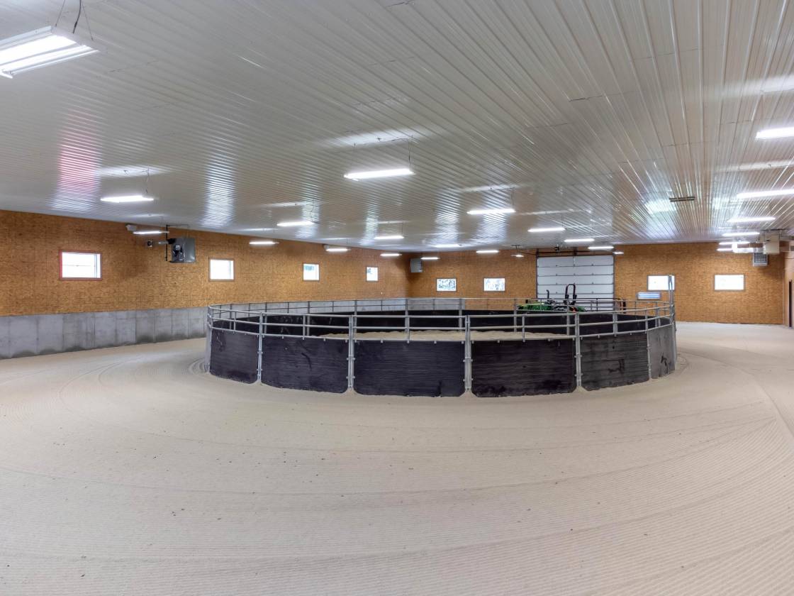 - Additionally there is a 80'x160' heated indoor riding arena with center 50' diameter round pen.