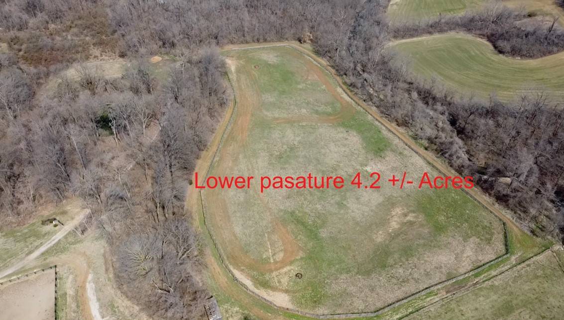 4.2 Acre Lower pasture with (rough) lean-to cattle feeder – hydrant near round pen