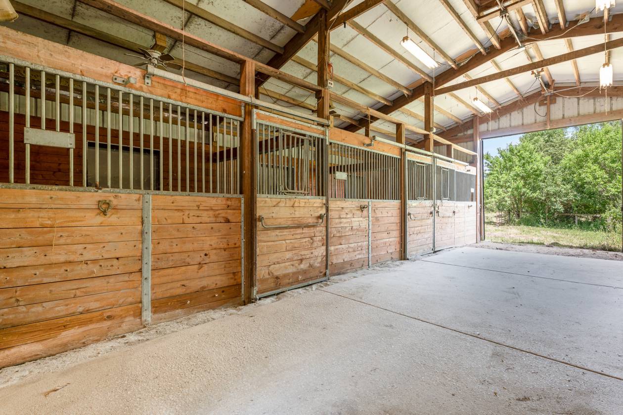 fenced • pond • 2 barns with 4 stalls