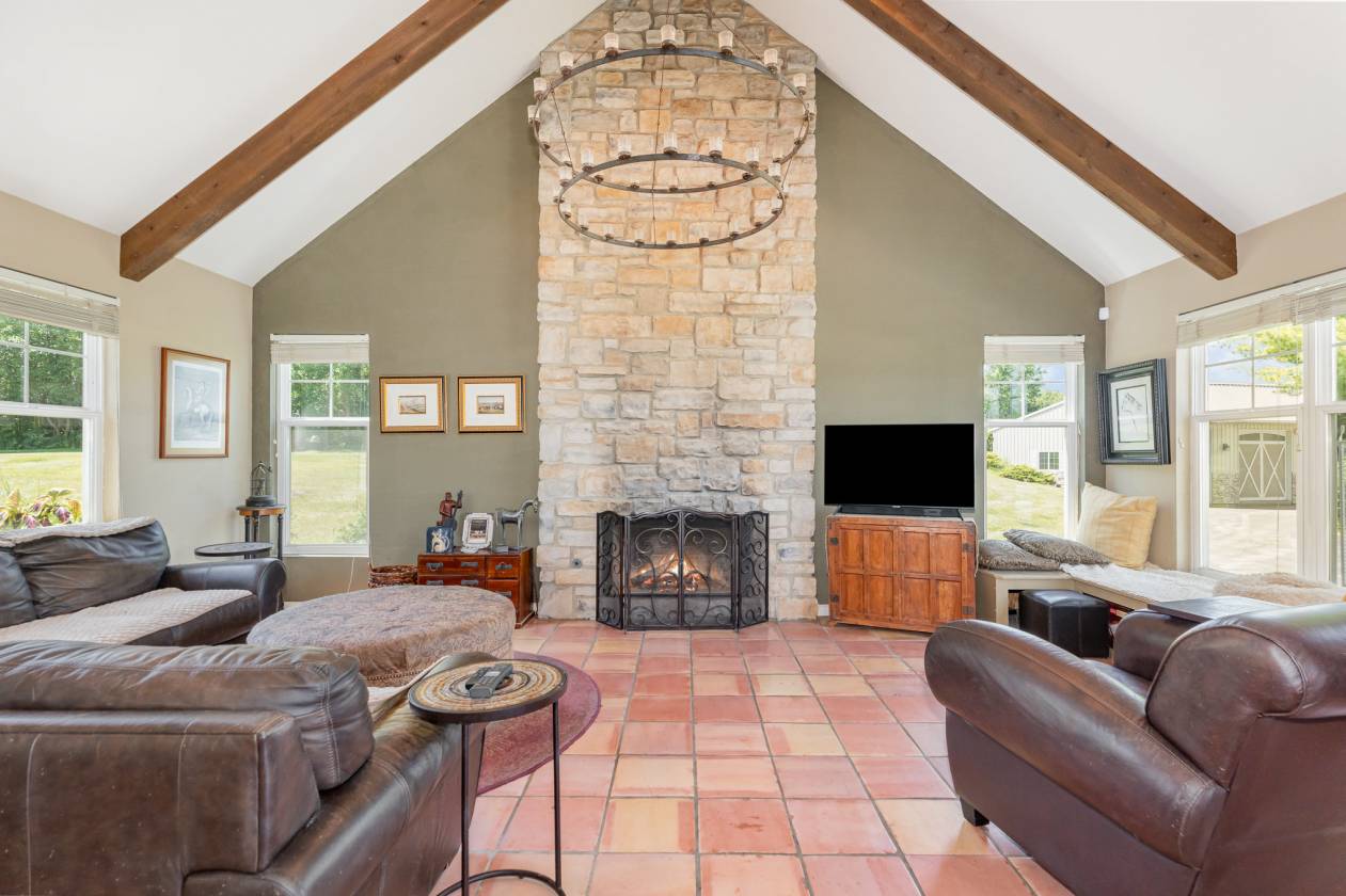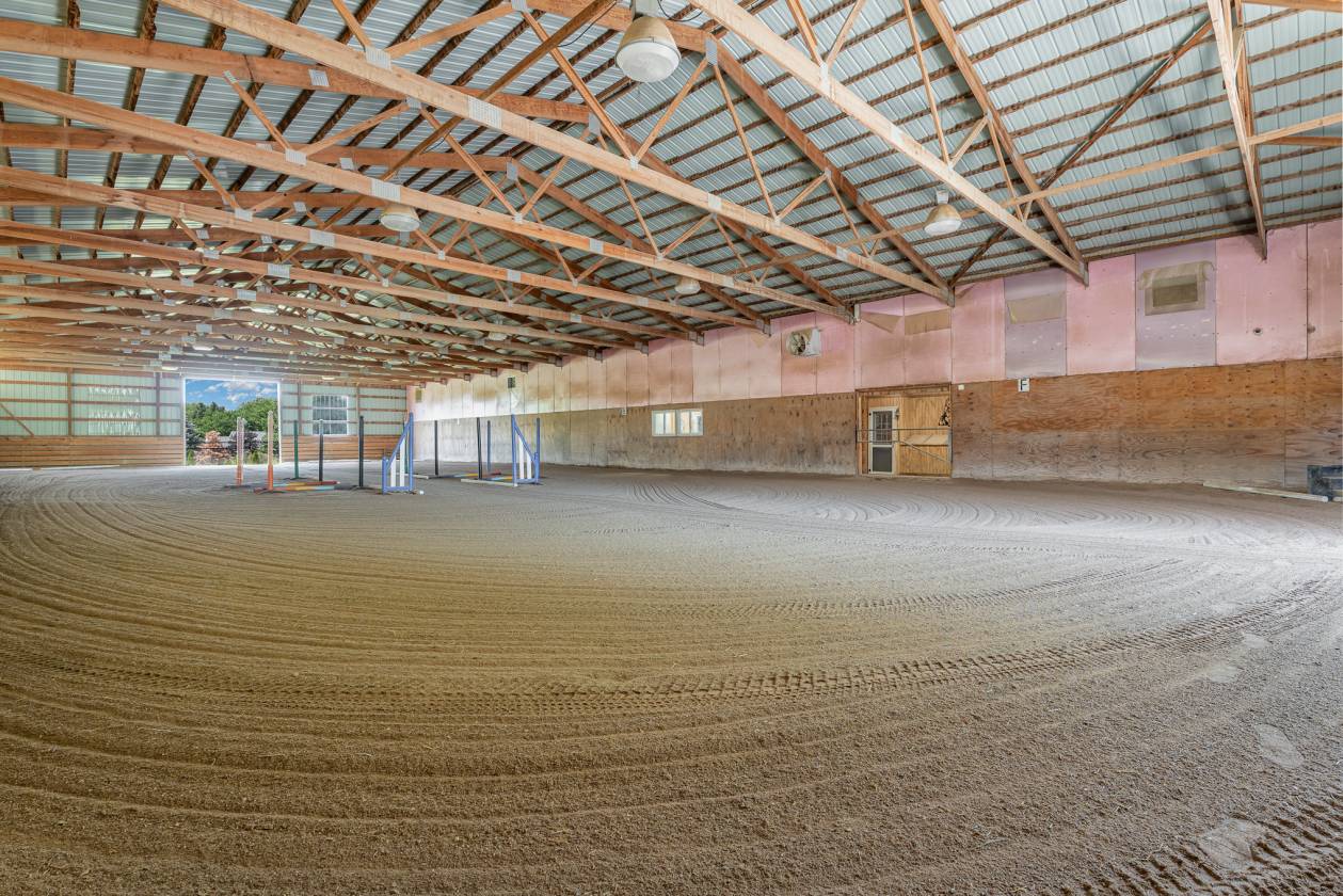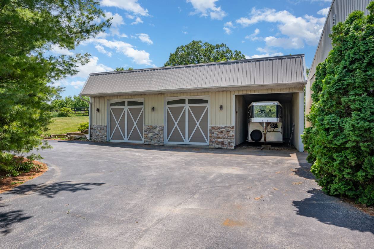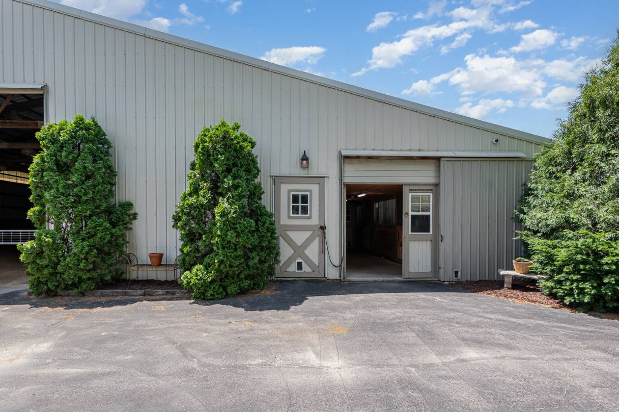 This is a once-in-a-lifetime opportunity – first time on the market! EXQUISITE 5 ACRE EQUESTRIAN ESTATE FEATURING AN ELEGANT CUSTOM RANCH HOME, MODERN BARN with INDOOR ARENA and CARRIAGE HOUSE STYLE STORAGE BUILDING…JUST MINUTES FROM TRAILS AT ROCK CUT STATE PARK. Nestled away, hidden by mature trees and set well back from the road, this home offers privacy, tranquility and security. Custom built with thoughtful design at every turn; this property welcomes your family and horses. It’s a rare blend of country living with city convenience. Stepping through the front door, you are welcomed to an atmosphere of warmth and understated luxury. It boasts more than 4,400 square feet of finished space offering a total of 4 bedrooms, 4.5 bathrooms, 4-car garage and a partially finished, full, lower level. Soaring ceilings, expansive windows, and gleaming hardwood floors invite natural light and expansive views into every room. Grand Great Room is anchored by a charming fireplace, this open concept living space flows seamlessly into the gourmet kitchen and dining area, creating an ideal environment for entertaining or quiet evenings at home. The Chef’s Kitchen is outfitted with custom cabinetry, top-of-the-line appliances, island and Corian countertops. Steps down a spacious hallway featuring built-in bookcases you’ll find a large Family Room with wood beamed vaulted ceilings, a soaring stone fireplace open to a 2nd kitchen and dining area on Mexican tiled floors. The large 1st floor primary suite features two full, his and her bathrooms, walk-in-closet and sitting area with a panoramic window seat overlooking the large backyard, paddocks and pastures. A large optional primary suite is on the lofted 2nd floor. Additional bedrooms are generously sized, each with ensuite bathrooms walk-in closets and lovely views. The lower level is tastefully finished with the 4th bedroom, bathroom and a second large family room. Outdoor Living options include the raised balcony, ground level expansive deck and shaded comfort on the lower-level covered patio. Whether you are a professional rider, amateur, or simply dream of becoming one, this estate offers plenty of options to train, hack out or just enjoy and pamper your equine friends. EQUINE AMENITIES were designed for function, convenience, comfort and safety. They include: 7 STALL BARN / AISLE is 20 x 135 (Stalls are 12x12 with rubber mats and individual lights), climate-controlled rooms include two offices, tack room and half bath. The wash rack offers hot and cold water. The INDOOR ARENA is 60x135 with 16 foot sidewalls and sand footing. The CARRIAGE HOUSE STYLE HAY BARN is 28 x 48; perfectly suited for hay, equipment and farm supplies with its 2 overhead doors, concrete floors and electric. (36 ft are enclosed and the remaining 12 ft functions as a trailer port). With a classic look of a Kentucky horse farm, 4-BOARD BLACK WOOD FENCING encloses multiple pastures that allow for thoughtful rotation and healthy grazing while 4 paddocks feature all-weather footing and no climb fence. The farm is an oasis with close proximity to shops, dining, healthcare and interstate as well as show facilities and parks with equestrian trails. It’s a beautiful property in all seasons! It’s a place to nurture your love for horses, connect with nature, and savor the joys of gracious country living. This estate is more than a property…it’s a lifestyle! Additional Features include High-speed internet and security system in both the house and barn. Other Potential Uses include small scale boarding, hobby farm supporting other animals or sustainable agriculture, event hosting: clinics, gatherings or intimate celebrations, serene family retreat or multi-generational living, hobbyist / collector, contractor or other home-based business with ample storage and office space.