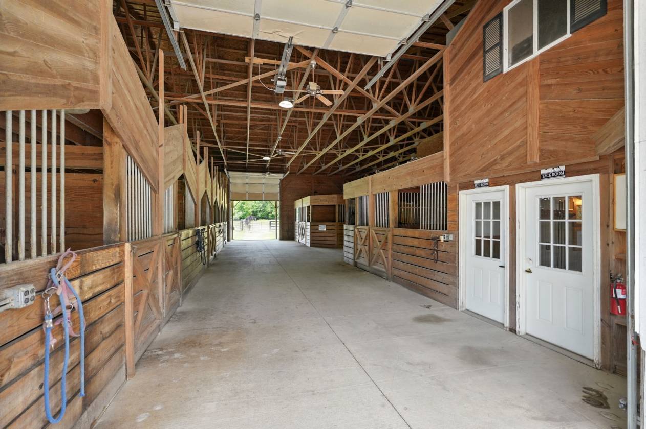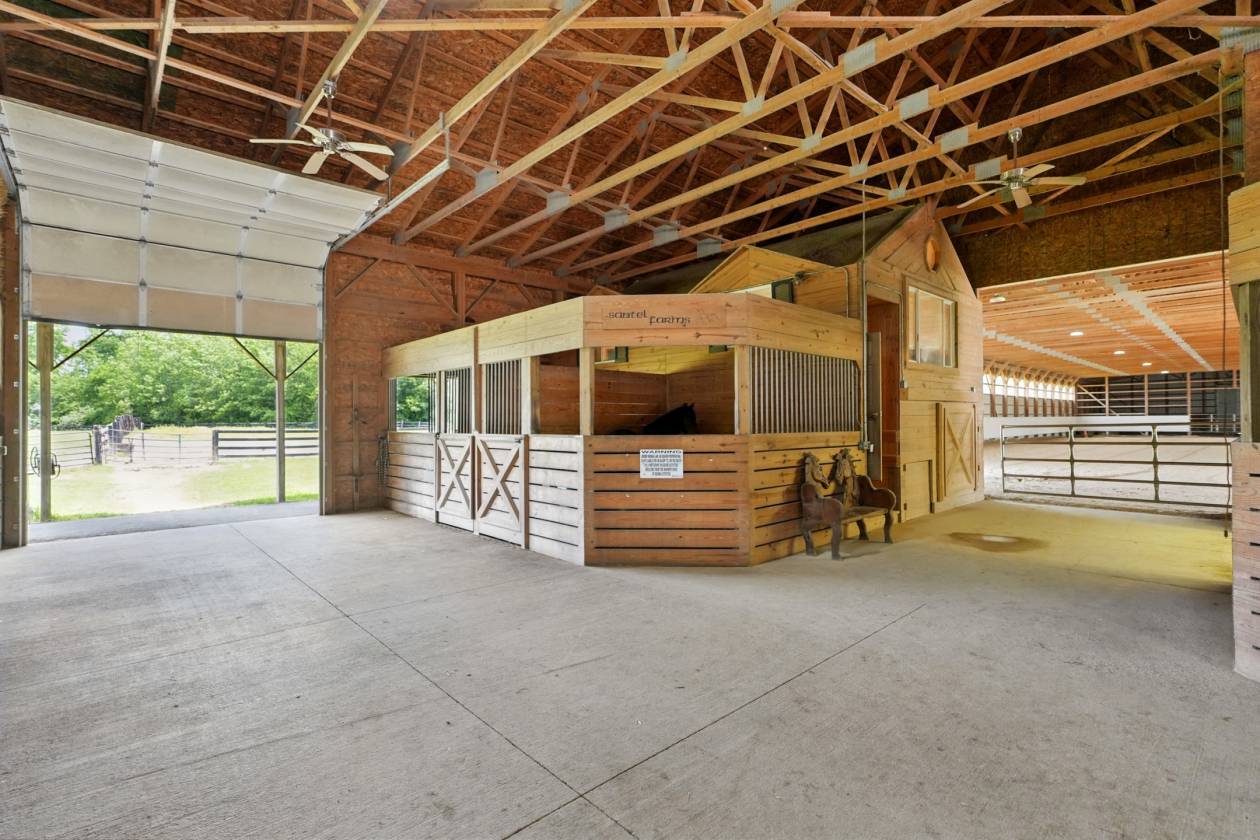 This incredible 9.5-acre equestrian estate is a rare opportunity for horse enthusiasts, trainers, or entrepreneurs seeking space, functionality, and endless potential. The property features two barns with a total of 23 stalls: the primary arena includes 10 oversized 12x12 stalls, two of which convert into foaling stalls, while the second barn offers 10 additional 10x11 stalls plus three 12x12 stalls in the back, ideal for training, boarding, or running a horse hotel.