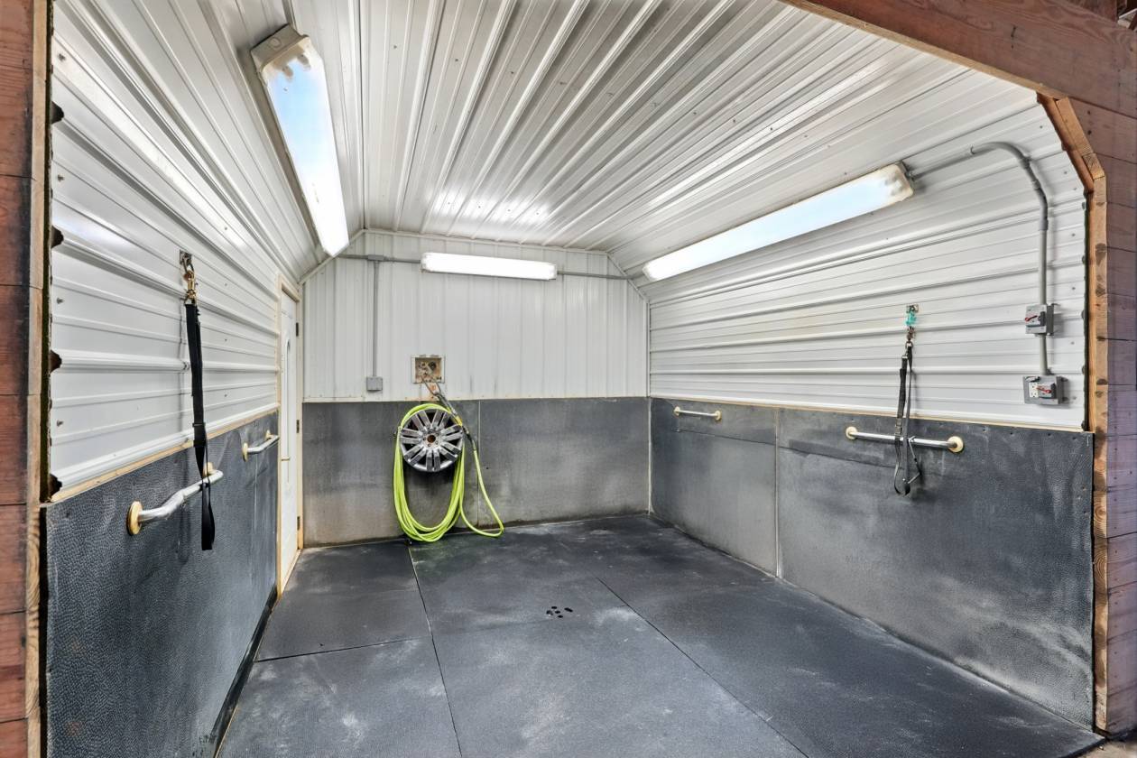 The 254’x72’ indoor riding arena with a 40’x40’ training area is thoughtfully designed for year-round use, with an insulated ceiling, 2 tack rooms, feed room, wash bay, an observation room, and a loft space that can be finished as an apartment or storage.