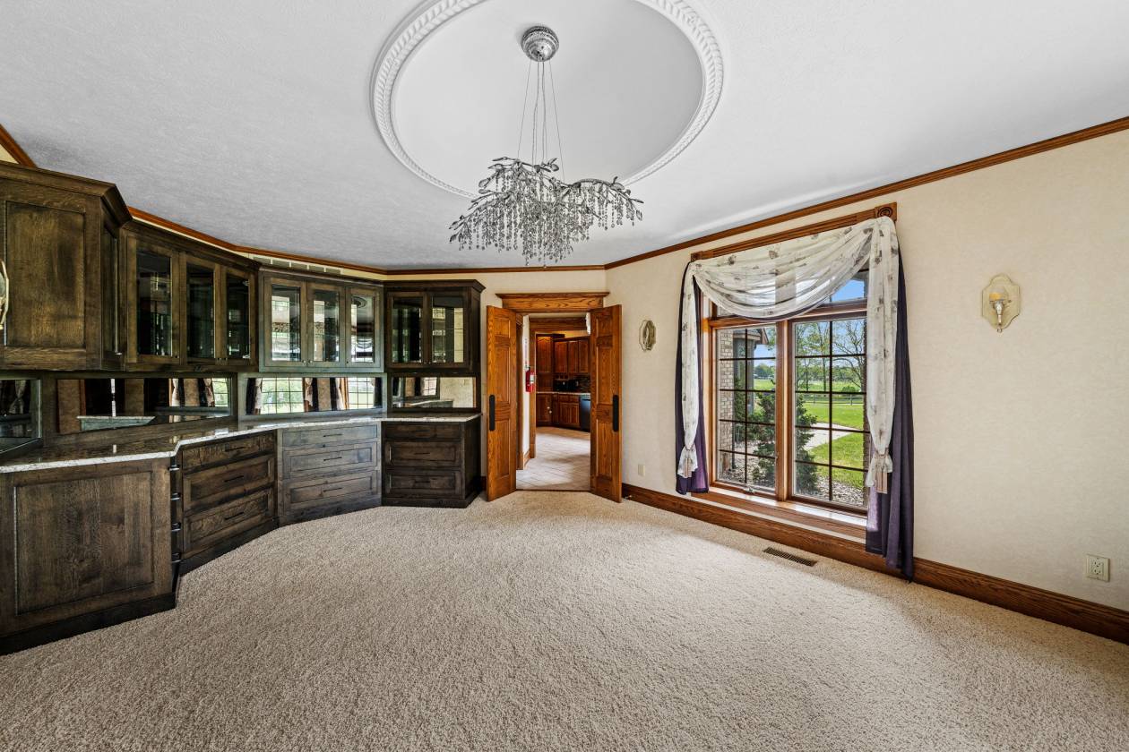 ... Lower level: second kitchen, theater area, office with cherry wood mouldings and built-ins, walkout to back patios