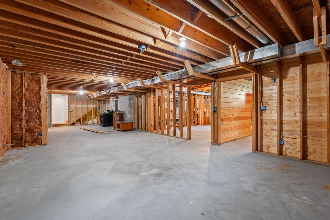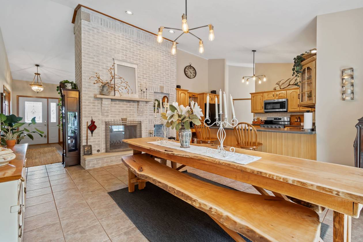 - A covered front porch welcomes you home; upon entering, you'll love the floor to ceiling brick fireplace. This dual sided fireplace is enjoyable from both the living and dining rooms. The primary suite is huge and boasts hardwood flooring, a walk in closet and a bathroom with a vintage freestanding clawfoot tub. Bedrooms 2 & 3 are spacious as well & share a full bath. The open concept kitchen is home to tons of hickory cabinets for that farmhouse feel! A generously sized mud/laundry room with a 3/4 bath is a great place to clean up after the chores are done. Need more space? The 2200 sqft walkout basement is a clean slate & offers endless possibilities! There are some walls framed up with some knotty pine siding installed & a 3/4 bath is roughed in. An under porch concrete shelter room & an under chimney built in gun safe are great bonuses.