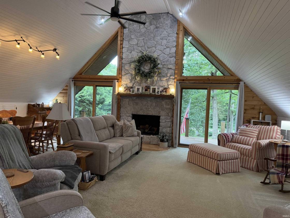 Discover this impressive 1816 sq ft home where rustic charm meets modern convenience. Featuring 2 or 3 bedrooms, 2 full baths, and a loft, this home is anchored by a stunning fireplace and surrounded by serene natural beauty. Enjoy relaxing or entertaining on the expansive trex decks while the concrete drive & patio add ease and functionality to your outdoor living. The outdoor space is exceptional, beginning with a versatile building just behind the home that includes a large covered patio, full kitchen, full bath, screened porch, and. abundant storage. Nearby, a 44 x 46 pole barn offers well-designed stalls for your animals, plus a 46 x 16 lean-to provides welcome shade for horses or livestock. Your guests will love the dedicated camping area with 30 & 50 amp hookups and a water connection . . . ideal for weekend visits or gatherings. This sale includes 3 parcels totalling 13.68 acres with a second entrance on the back side of the property . . . perfect for added accessibility or future expansion. All just a minute from the gate, the beauty, and the recreation of Spring Mill State Park.