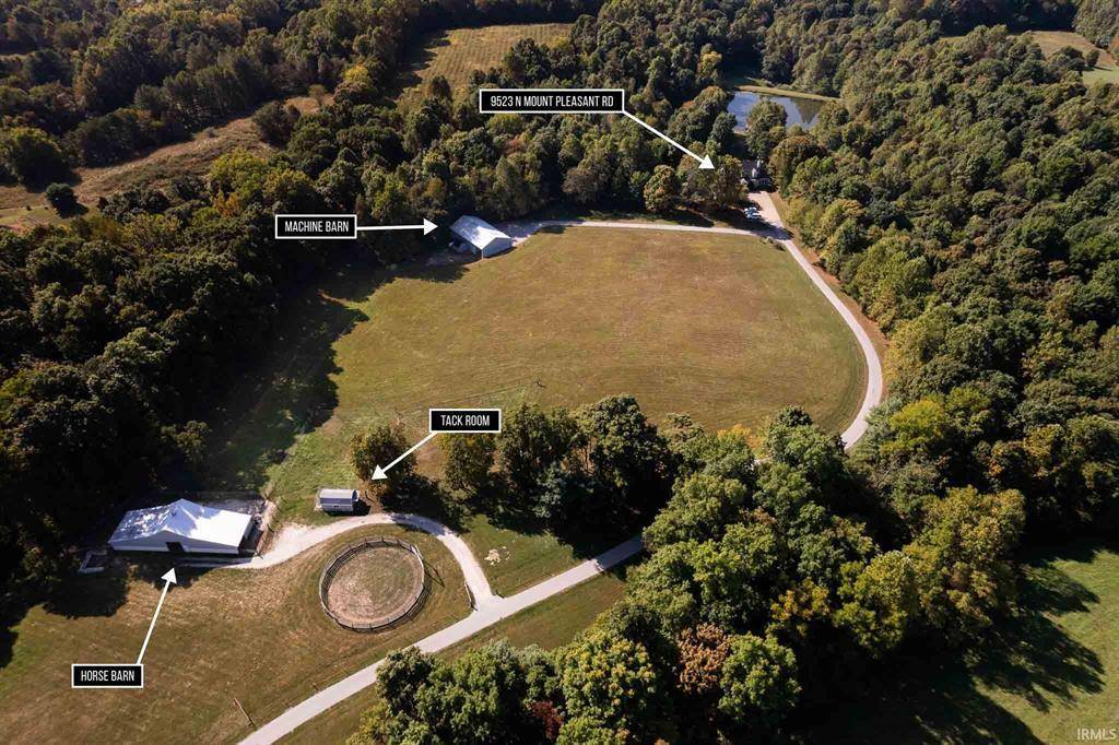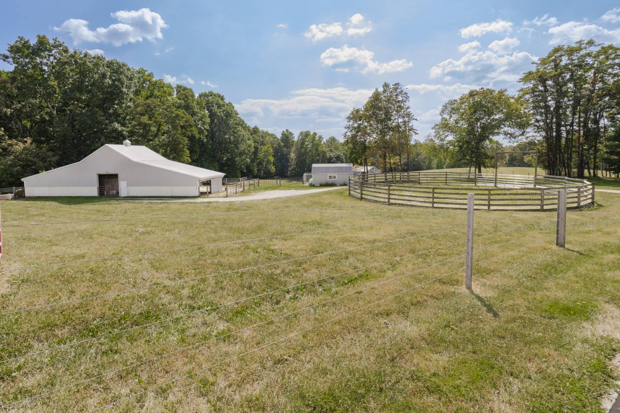 133 acres of pastures, open hay fields and woods 2-3 acre spring fed lake. Some classified forest and conservation program areas. Several outbuildings including stall barn with run in shed, machinery building with room for multiple vehicles and implements, tack shed, open shed, round pen. Super private off of a blacktop road that is just a few miles off of Interstate I-69 convenient to Bloomington and Indianapolis.