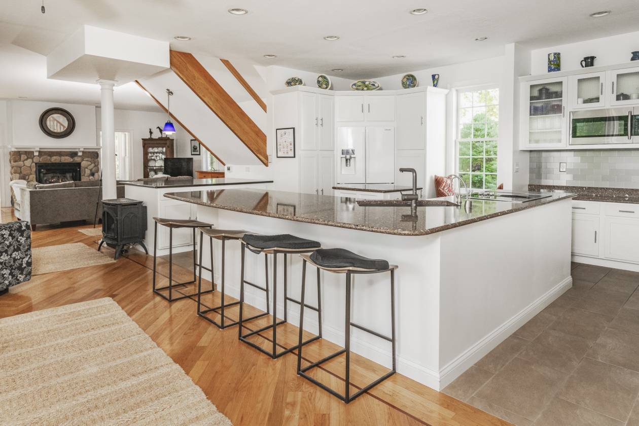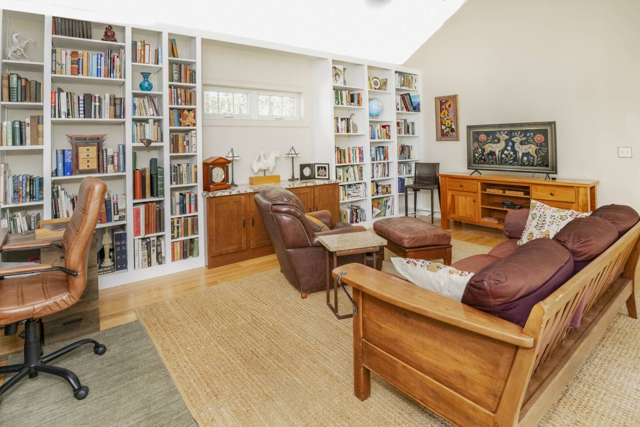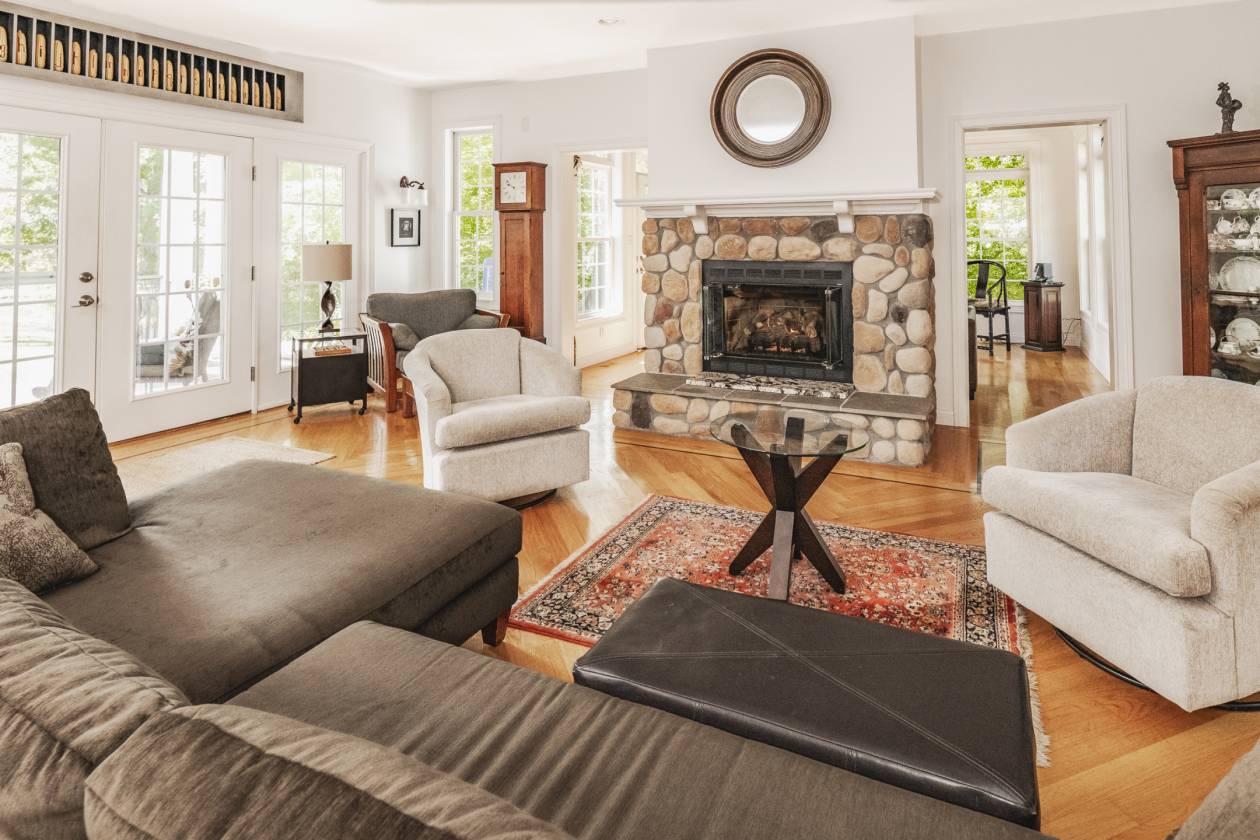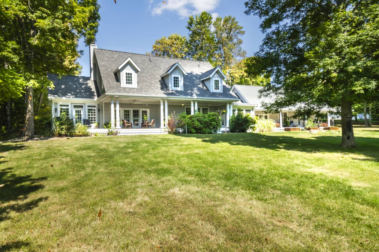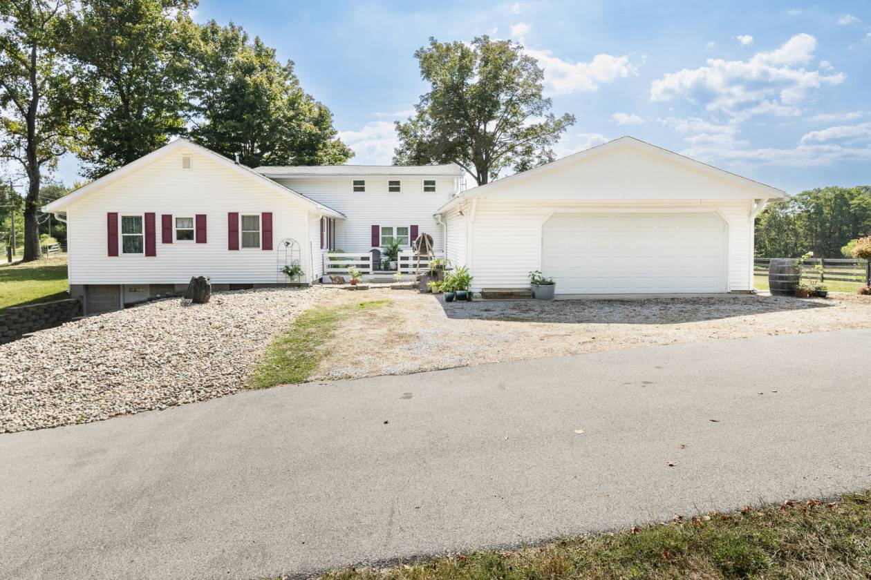 - Luxurious and super livable 4 bedroom, 3 1/2 bath home with over 3,000 s.f. of living space. Many features including two primary suites (one main floor and one upper level). Great room with fireplace, sun room, fully equipped gourmet kitchen with quartz counters, breakfast bar & nook plus huge formal dining room. Library/study/office with built in bookshelves. Lots of walk-in closets and storage. Huge covered rear porch overlooks private lake and expansive lawn. Attached garage has efficiency in-law or caretakers' apartment. There is also a nice rental house or caretakers' residence with garage. Several outbuildings including stall barn with run in shed, machinery building with room for multiple vehicles/implements, tack room, open shed, round pen. Super private, situated well off the road via a long blacktop drive. Just a few miles to Interstate I-69 for easy access to Bloomington and Indianapolis.