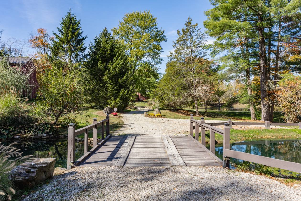 Exceptional 55-acre equestrian and event property in Owen County, offering a rare blend of fenced pastures, wooded acreage, multiple ponds, and miles of trails. Purpose-built facilities include an indoor riding arena, large show-barn complex, hay barn, and multiple pastures-ideal for boarding, training, and private equine use. The estate also features extensive event infrastructure: an arena with performance stage and six bathrooms, outdoor amphitheater, sanitation building with composting restrooms, studio and various event spaces, catering kitchen, and recording studio-providing turnkey potential for weddings, retreats, workshops, and creative or recreational programming. The custom-built main residence offers 5 bedrooms, 4 full and 2 half baths, office areas, an in-home theatre, and three seasons porch overlooking the grounds. Updates include renovated living spaces, mechanical improvements, insulation upgrades, and a new hot tub. A new guest house adds valuable lodging or rental options. Outdoor amenities include an in-ground pool, hot tub, patios, decks, water feature, and 125-ft suspension bridge. A unique opportunity for buyers seeking a private equestrian estate, income-producing venue, or multi-use retreat property.