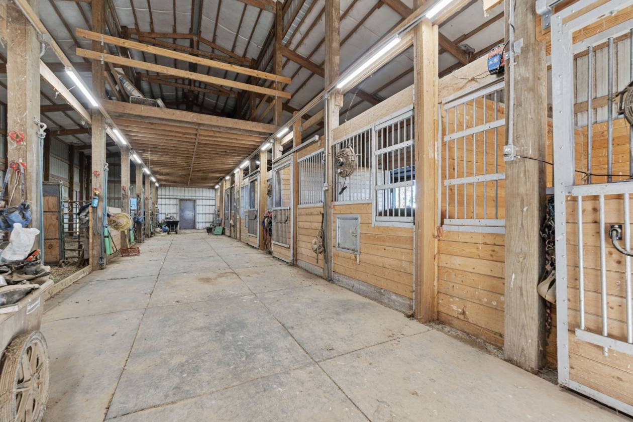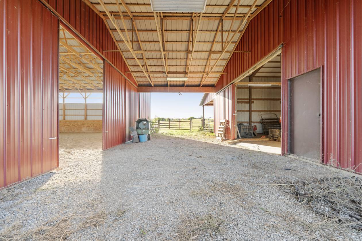 - Breezeway with roof connecting horse barn to arena (can go from stall to arena all under roof)