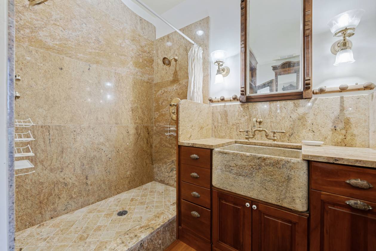 - Newer retaining wall and steps on south side of residence