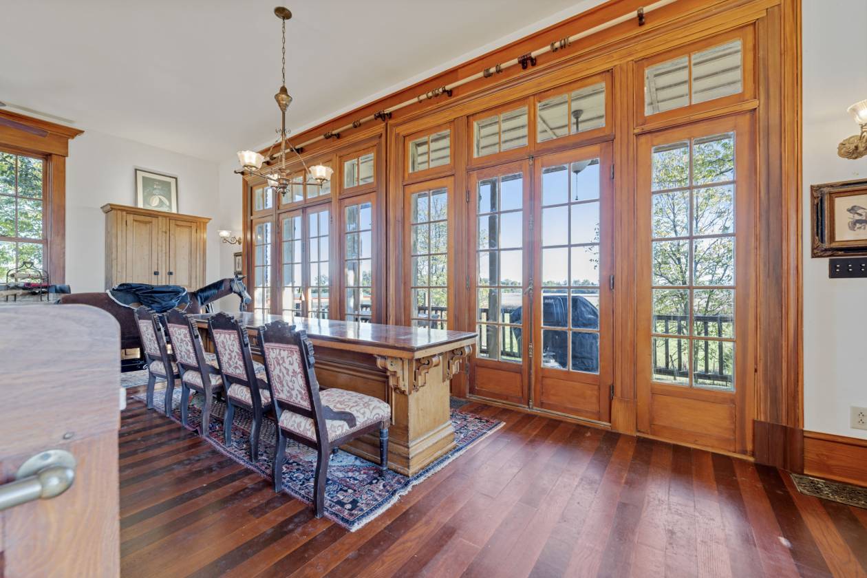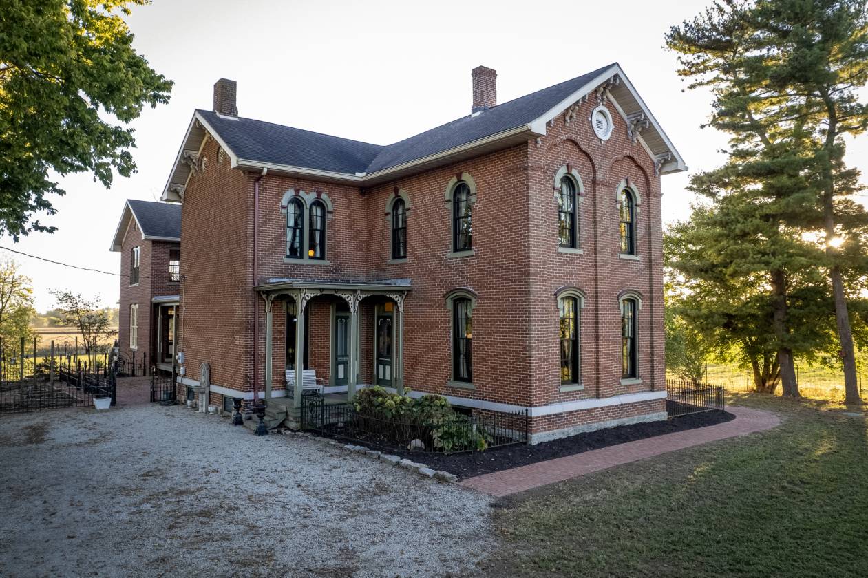 Timeless architecture meets contemporary refinement in this late-19th century Villa Italianate estate on 10 acres in Richmond, IN. Blending historic character with modern luxury and sprawling equestrian facilities, this property is unlike any other in Wayne County. The home showcases hallmark Italianate features — tall arched windows (recently replaced with high-end aluminum-clad Marvin windows), and ornate corbels and cornices. Inside, soaring 11' ceilings, original working transoms over doors, and original woodwork preserve period character. Natural light cascades into the massive 19' × 28' kitchen through an entire wall of southern-facing doors, reclaimed from a country club in upstate New York. The kitchen is appointed with solid-wood custom cabinetry, fitted to the Sub-Zero refrigerator as well for a seamless look. Huge slabs of granite (imported from India) adorn the walls, forming the backsplash, countertops, and even the elongated double bowl sink. The focal point of this amazing space is a Lacanche range handcrafted in Burgundy, France. All 3 full bath counters, backsplash, and sinks are finished with the same imported granite, and high-end fixtures/faucets. Outdoor living includes five porches – all decked with Ipe (Brazillion hardwood), terraced gardens with dwarf fruit trees, decorative iron fencing with custom gate. Equestrian amenities are exceptional: a 72' × 120'indoor arena (2019) with skylights, kick-walls, and dual sliding doors (16’x16’), a 36' × 72' barn with four (expandable to eight) stalls, breezeway connecting stalls to arena, heated/cooled tack room, a round pen, plus three additional buildings; 36x54 (built 2003), 50x65, and 30x40.Separate 200-amp service and an extra well serve all barns. Major systems include a geothermal loop (2009) and a new mound septic (2025) ADDITIONAL ACREAGE FROM THE ADJOINING 150 ACRES MAY BE PURCHASED WITH THE PROPERTY. FINAL ACREAGE ANDBOUNDARIES TO BE DETERMINED BY SURVEY AND SUBJECT TO SELLER APPROVAL ADDITIONAL PICTURES