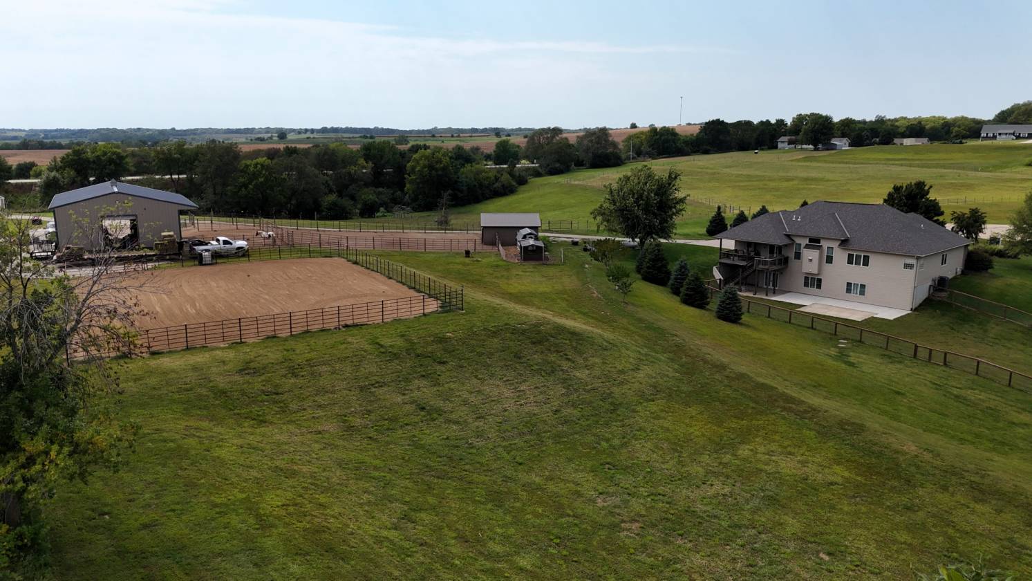 Over 10 Acres, on 2 parcels, provides the perfect equestrian haven! House built 2009 with 4200sf M/L, 5 beds and 4 baths. Two newer Horse barns. The larger barn has 5 stalls, hay loft, office, plenty of tack storage, indoor washing station with heater, 3 stalls open directly to metal fenced in area. This area also opens to the smaller barn which has 2 stalls and is set up as a birthing barn or to separate sick / injured horses. Both barns have an electrical box and cement floor. There is a 100x80 open riding arena with metal fencing. Small Storage Shed. Approximately 6 acres of fenced/cross fenced pasture with potential for additional building. This pasture can be secure gated to allow horses direct access between pasture and stalls. There are multiple fruit trees including wild plums, small garden area, 2 chicken coops, and a large fenced backyard (house). Close proximity to Waubonsie Equestrian Trails. On hard surface roads.