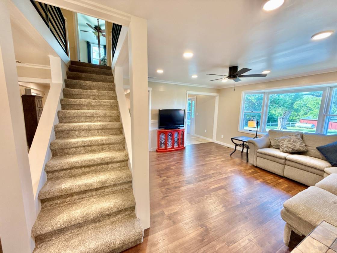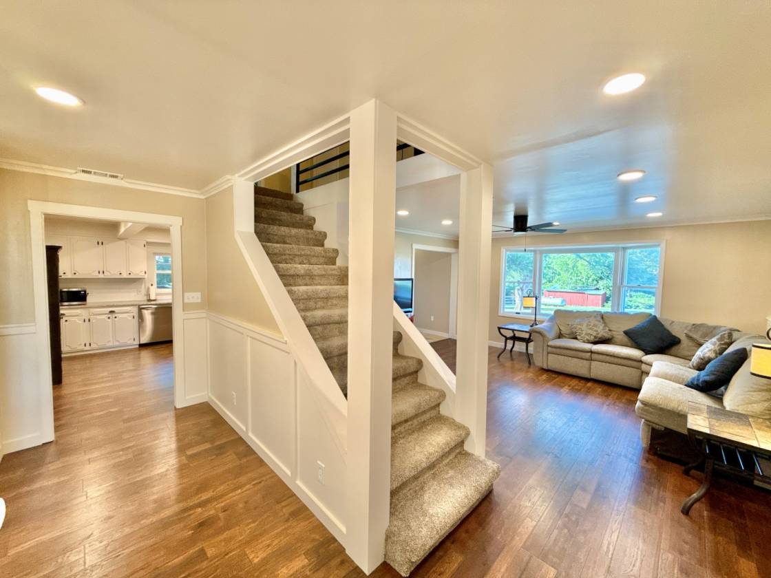 This stunning property boasts 4 spacious bedrooms – one conveniently located on the main floor and three upstairs-along with 3 full bathrooms, including two on the main level and one upstairs.