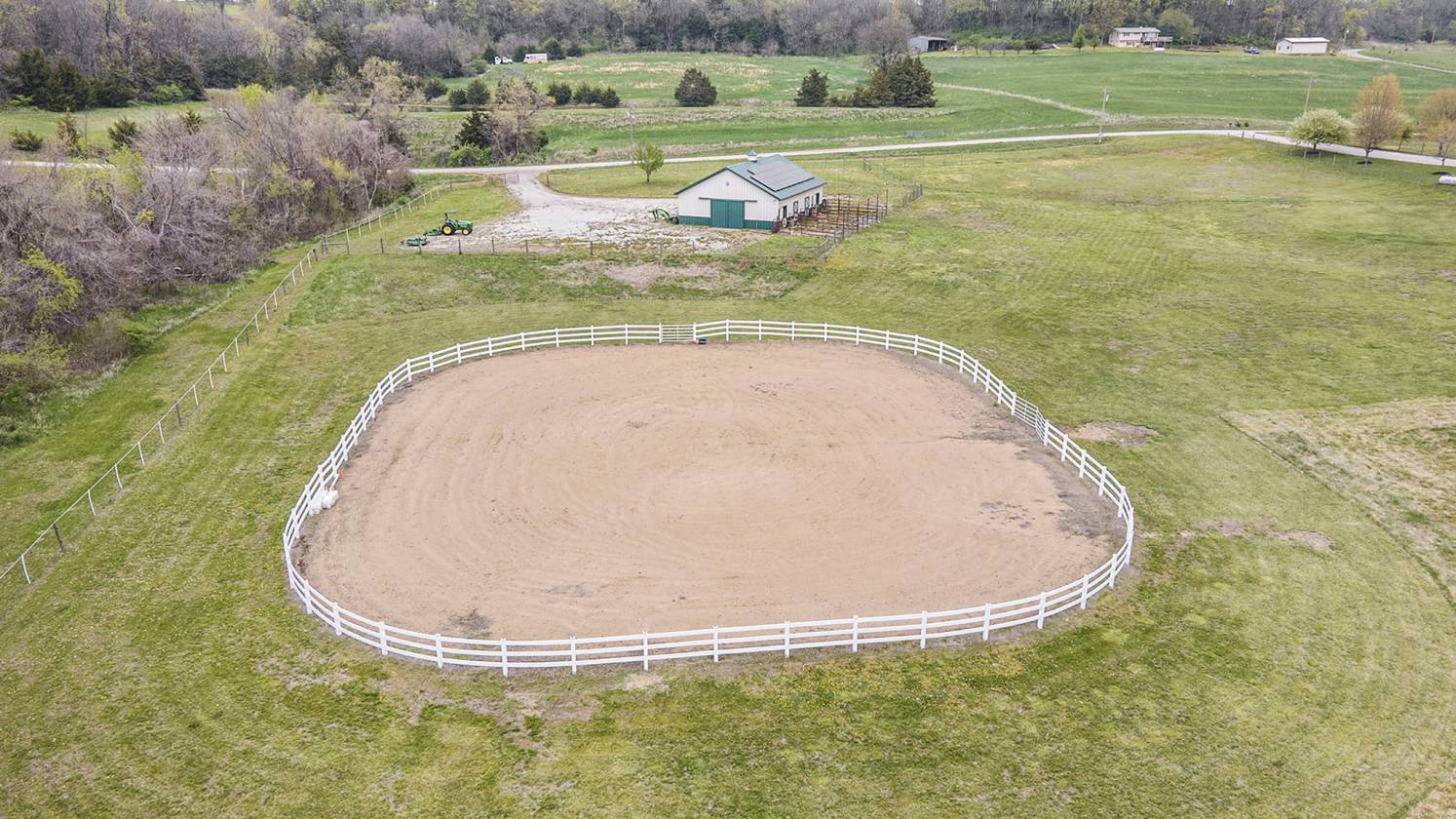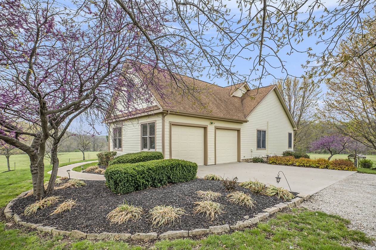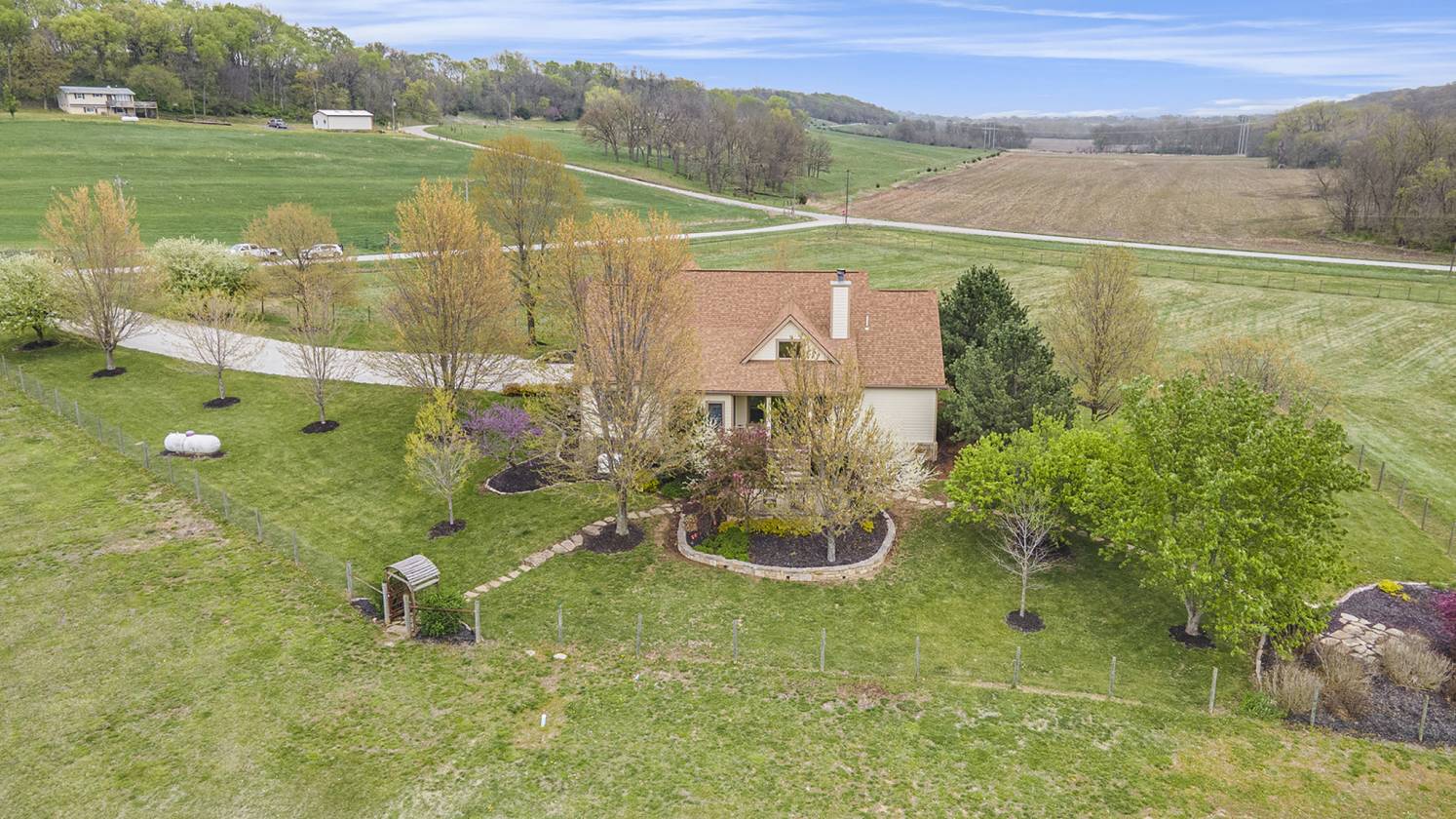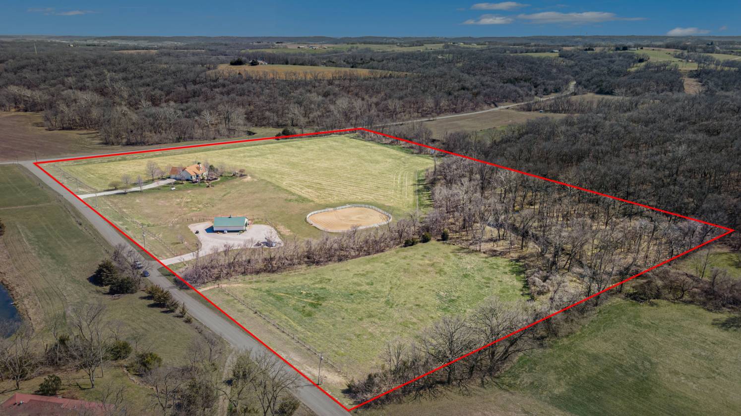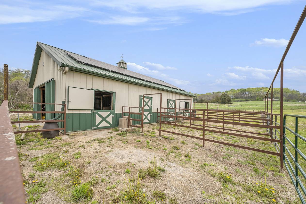 Discover the quiet charm of country living in this beautifully built Craftsman-style home, set on 30 peaceful acres with fully equipped, turnkey horse facilities. Tucked into a quiet valley, this 2,040 square foot, 3-bedroom, 2-bathroom custom-built home offers comfort, quality, and timeless design surrounded by natural beauty. The main floor features a spacious primary suite along with a second bedroom and full bathroom, providing privacy and flexibility for guests or family. The great room showcases soaring ceilings, abundant natural light, and a wood-burning fireplace—creating a warm, inviting space to gather and relax. Just off the great room, the pass-through kitchen is both elegant and functional, featuring granite countertops and beautifully crafted quarter-sawn oak cabinetry. A cozy sitting room offers the perfect quiet space for unwinding or could easily serve as a home office. Tray ceilings in the primary bedroom and formal dining room, along with 4-inch wide pine wood flooring, add character and thoughtful detail to the home’s design. Step outside to enjoy one of the many scenic views from the back deck or stone patio—ideal for outdoor dining, morning coffee, or evenings under the stars. The full, unfinished basement provides ample opportunity to expand and customize, complete with one egress window and plumbing already stubbed for an additional bathroom. The exterior of the home features James Hardie concrete siding for long-lasting durability and low maintenance. An owned solar panel system enhances energy efficiency, while a Generac generator ensures dependable power in all seasons. The horse facilities are ready for immediate use, including a 4-stall center aisle barn with a finished tack room, space for a wash rack, individual runs, automatic waterers, and fenced pastures. A well-maintained arena with quality sand footing is also included—ideal for training or casual riding. At the rear of the property, Plum Creek meanders year-round through the timber, providing perfect habitat for deer, turkey and other wildlife. . This exceptional property offers something for everyone!