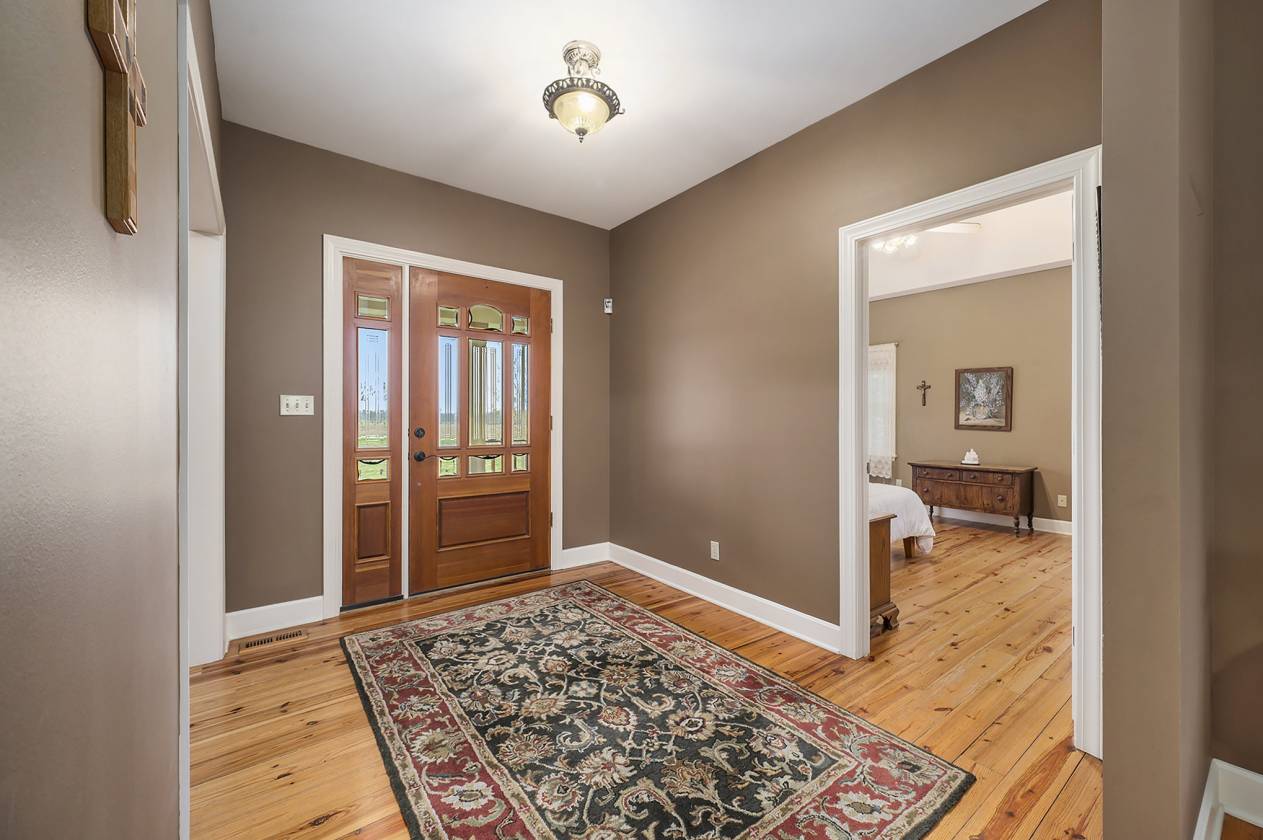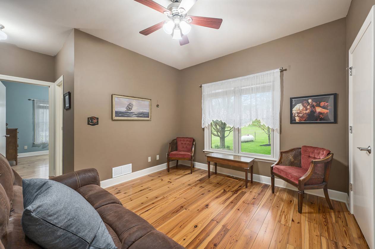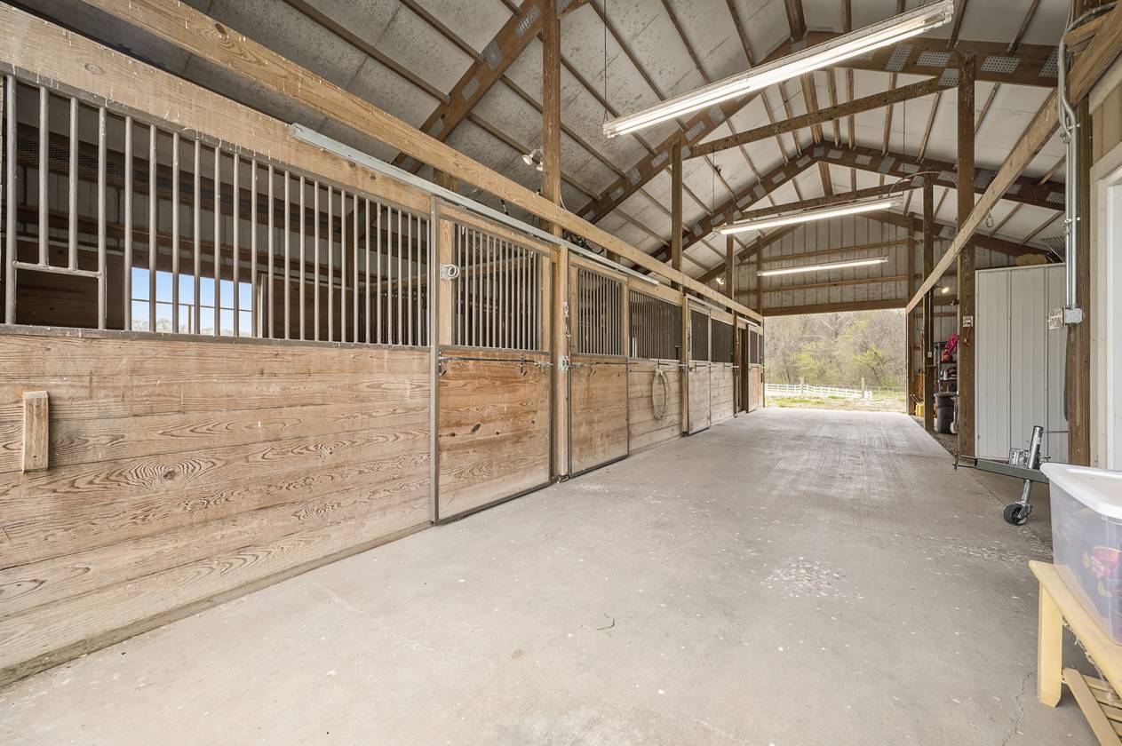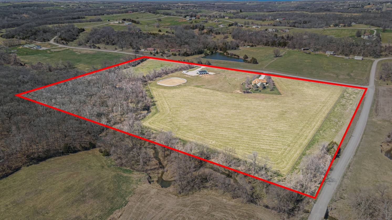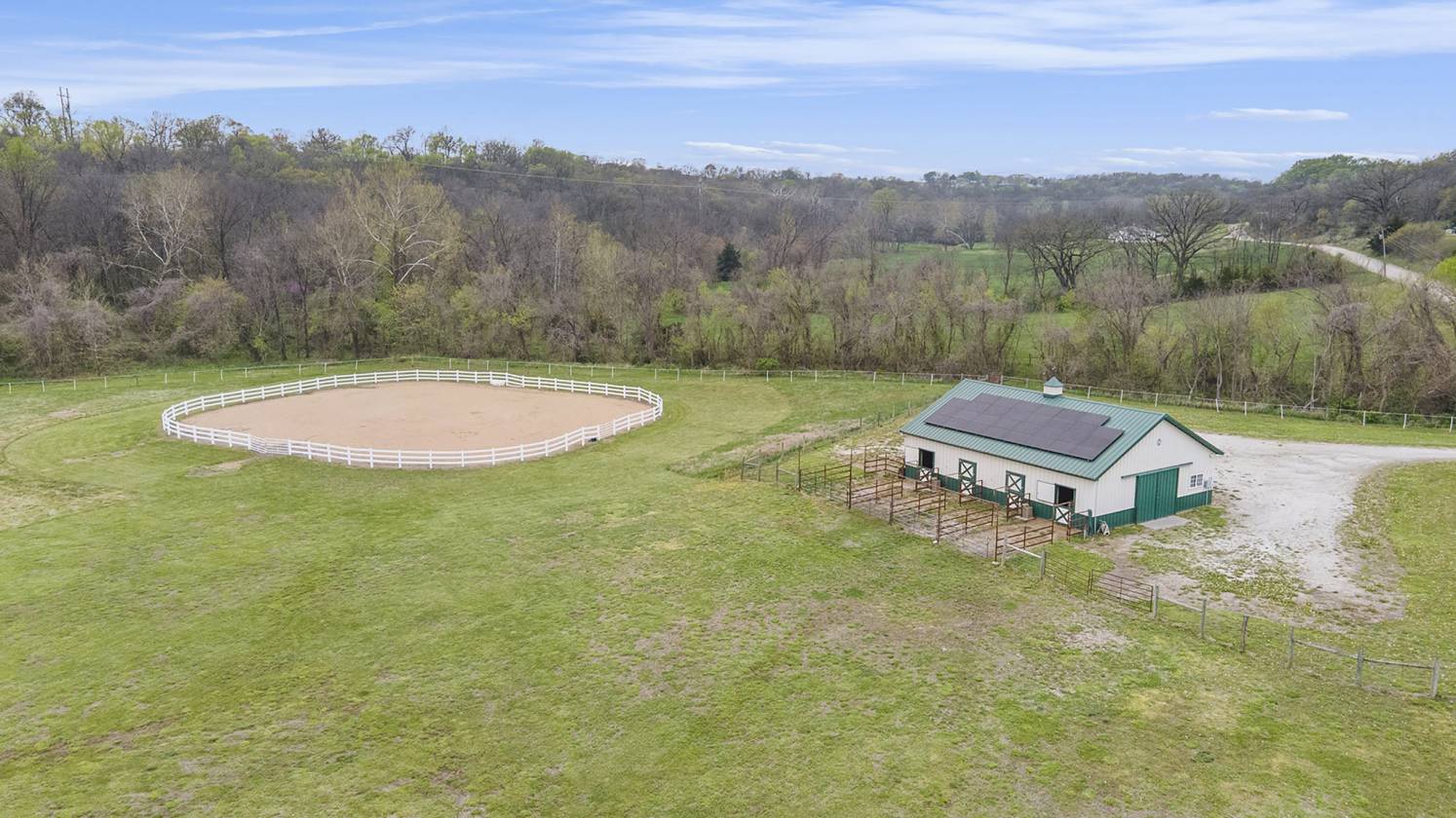 Discover the quiet charm of country living in this beautifully built Craftsman-style home, set on 30 peaceful acres with fully equipped, turnkey horse facilities. Tucked into a quiet valley, this 2,040 square foot, 3-bedroom, 2-bathroom custom-built home offers comfort, quality, and timeless design surrounded by natural beauty. The main floor features a spacious primary suite along with a second bedroom and full bathroom, providing privacy and flexibility for guests or family. The great room showcases soaring ceilings, abundant natural light, and a wood-burning fireplace—creating a warm, inviting space to gather and relax. Just off the great room, the pass-through kitchen is both elegant and functional, featuring granite countertops and beautifully crafted quarter-sawn oak cabinetry. A cozy sitting room offers the perfect quiet space for unwinding or could easily serve as a home office. Tray ceilings in the primary bedroom and formal dining room, along with 4-inch wide pine wood flooring, add character and thoughtful detail to the home’s design. Step outside to enjoy one of the many scenic views from the back deck or stone patio—ideal for outdoor dining, morning coffee, or evenings under the stars. The full, unfinished basement provides ample opportunity to expand and customize, complete with one egress window and plumbing already stubbed for an additional bathroom. The exterior of the home features James Hardie concrete siding for long-lasting durability and low maintenance. An owned solar panel system enhances energy efficiency, while a Generac generator ensures dependable power in all seasons. The horse facilities are ready for immediate use, including a 4-stall center aisle barn with a finished tack room, space for a wash rack, individual runs, automatic waterers, and fenced pastures. A well-maintained arena with quality sand footing is also included—ideal for training or casual riding. At the rear of the property, Plum Creek meanders year-round through the timber, providing perfect habitat for deer, turkey and other wildlife. . This exceptional property offers something for everyone!