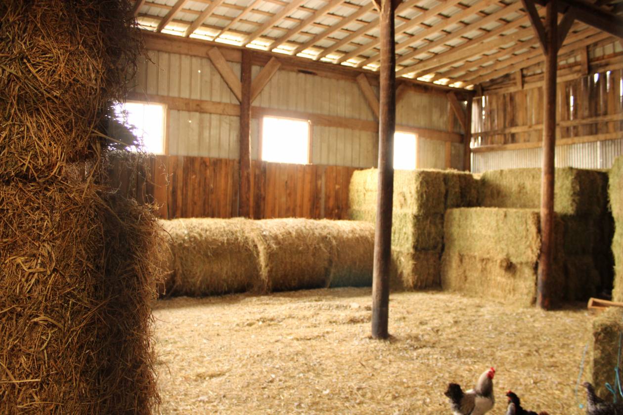 - large barn with hay storage and chicken coop with 8 stalls