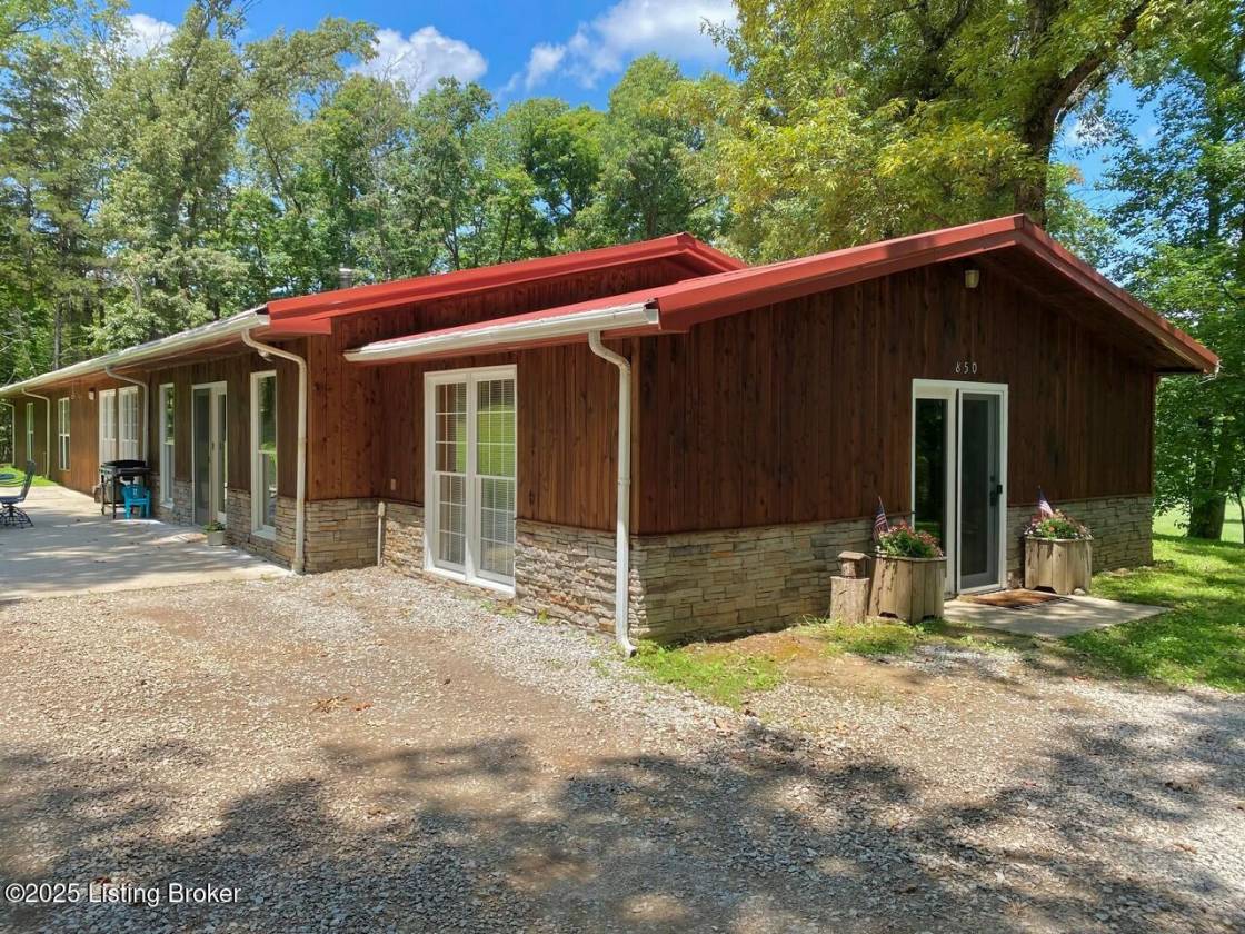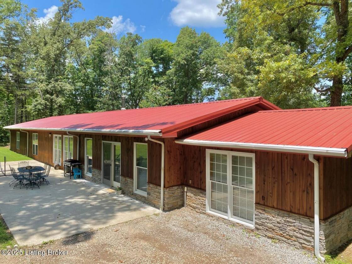 Discover this hidden gem tucked away on 10 lush acres in Hardin County. This private paradise boasts over 3,200 sq ft, 3BR, 2½BA with open concept living space drenched in natural light, perfect for intimate family nights or grand entertaining. The expansive kitchen features handcrafted walnut cabinets with rich grain depth, sleek 2″ polished concrete countertops that blend industrial flair with refined elegance, and a large maple top island, complete with seating, designed for hosting all gatherings. The adjacent dining area is ideal for hosting parties or casual meals. The primary suite has two outside entrances with ornate glass & a sliding door that overlooks the picturesque and well-manicured acreage with large trees. Completing this space is a large bathroom, walk-in shower.