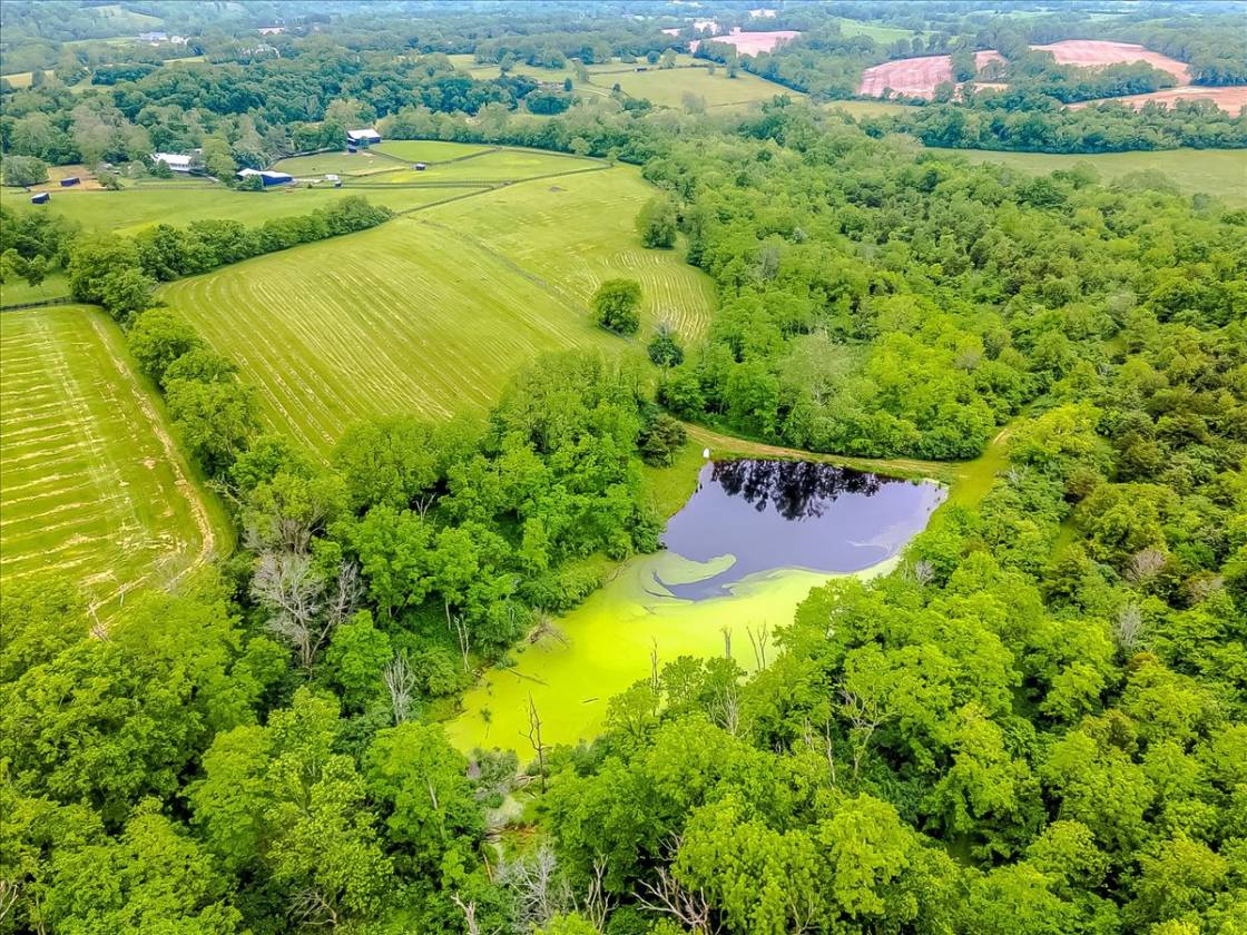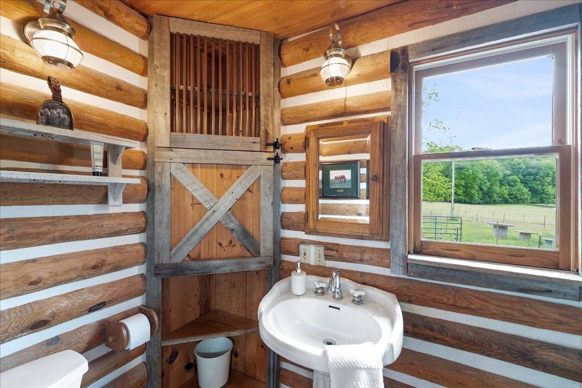 This is an extraordinary opportunity to own a piece of Kentucky history on 87 lush, gently rolling acres, neighboring the renowned Taylor Made Farm. This breathtaking property features a beautifully restored 1800's log home, thoughtfully expanded with modern comfort. The heart of the home is a stunning two-story great room with a dramatic fireplace perfect for entertaining in style. Offering 5 spacious bedrooms and 3.5 baths, a 2-car attached garage includes a private guest suite above, ideal for visitors, or potential Airbnb income. A 4-car detached garage provides the perfect space for a car enthusiast with 1,000+ sq ft of unfinished space above ready to become your dream studio, office, or apartment. Equestrians and hobbyists alike will appreciate the two well-appointed 9-stall barns, complete with a tack room and ample hay and equipment storage. You'll find acres of manicured pastures with four plank fencing & meandering wooded trails for riding or hiking. Wrapped with over 3000 feet of road frontage boarding Hickman Creek. Located less than 10 minutes to Brannon Crossing and Tates Creek Ctr