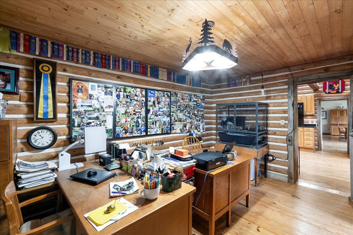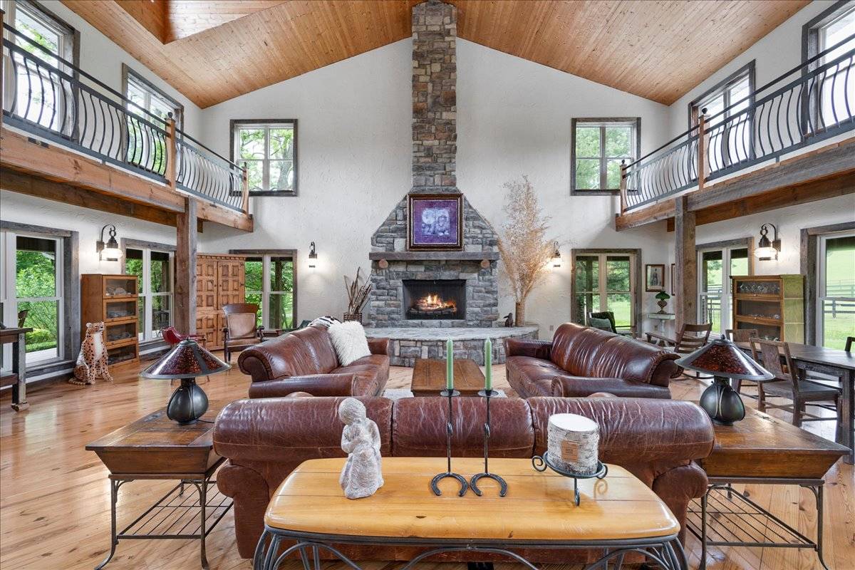 - This breathtaking property features a beautifully restored 1800's log home, thoughtfully expanded with modern comfort. The heart of the home is a stunning two-story great room with a dramatic fireplace perfect for entertaining in style. Offering 5 spacious bedrooms and 3.5 baths, a 2-car attached garage includes a private guest suite above, ideal for visitors, or potential Airbnb income. A 4-car detached garage provides the perfect space for a car enthusiast with 1,000+ sq ft of unfinished space above ready to become your dream studio, office, or apartment.