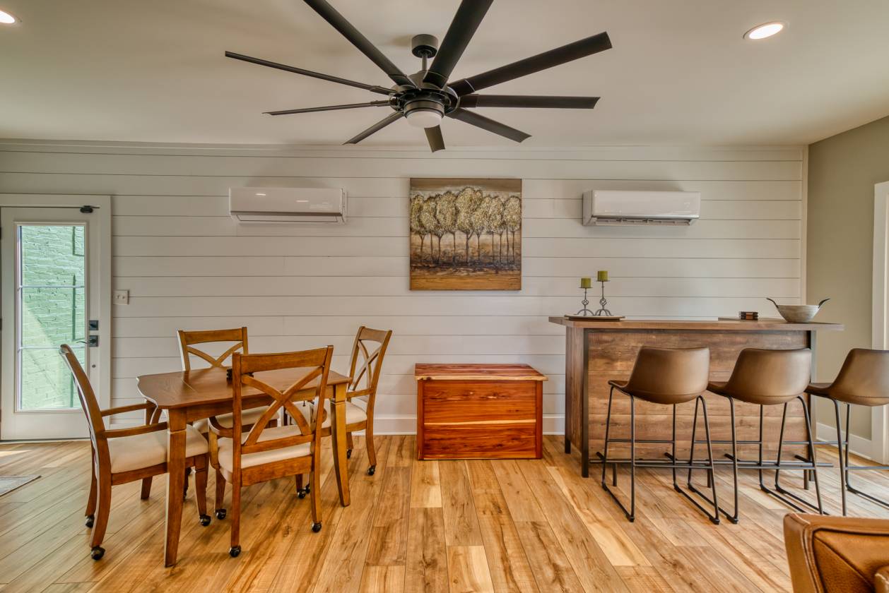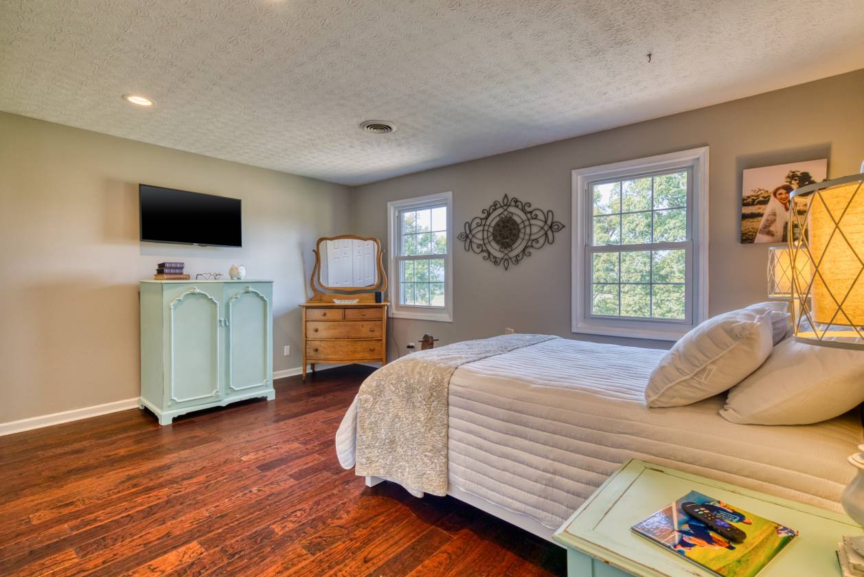 • The thoughtfully designed layout includes four bedrooms and three full baths, with a main-level bedroom and bath that provide a perfect setup for guests or a first-floor primary suite.