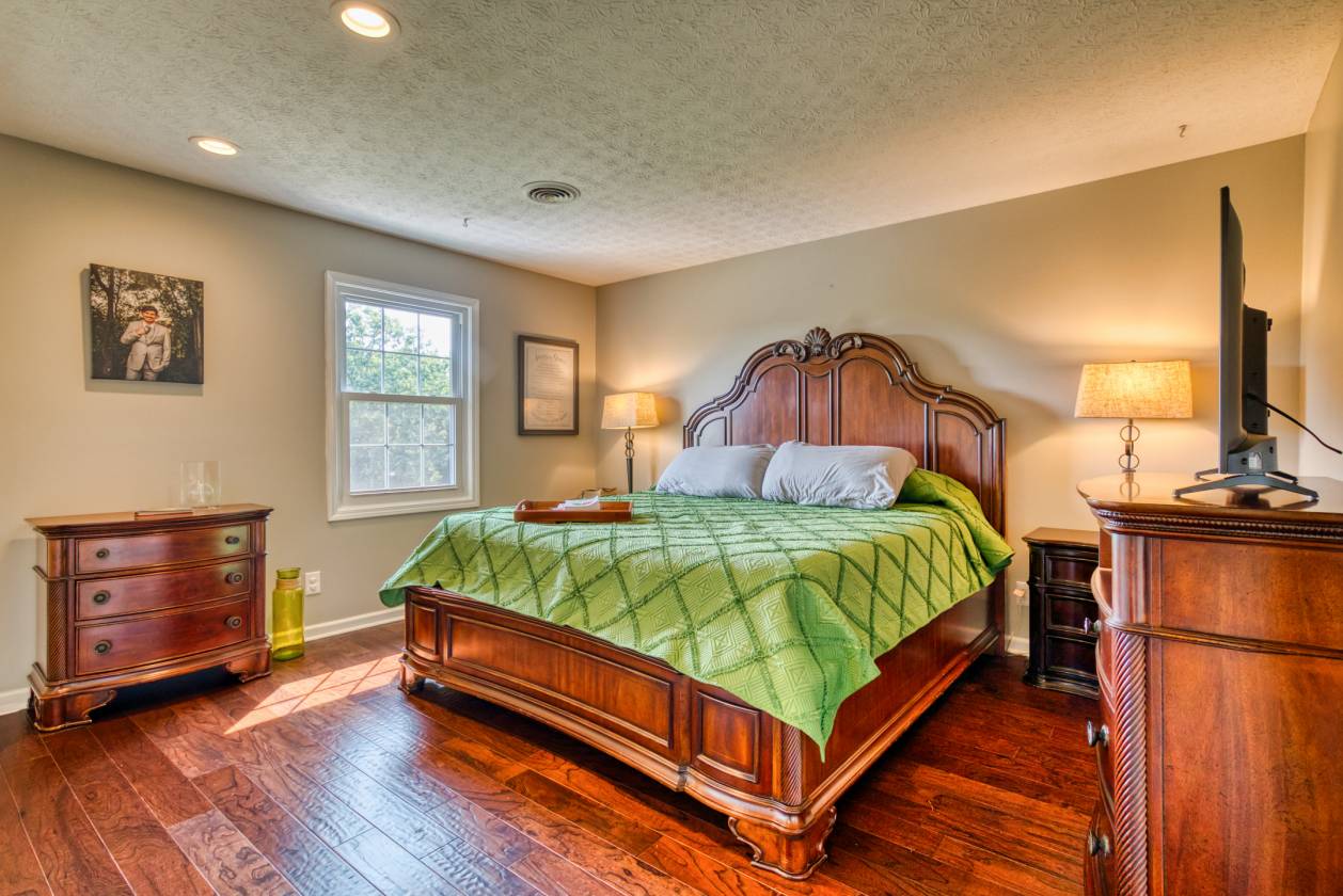 • White ash hardwood flooring on the main level and distressed Brazilian hardwoods upstairs add warmth and elegance.