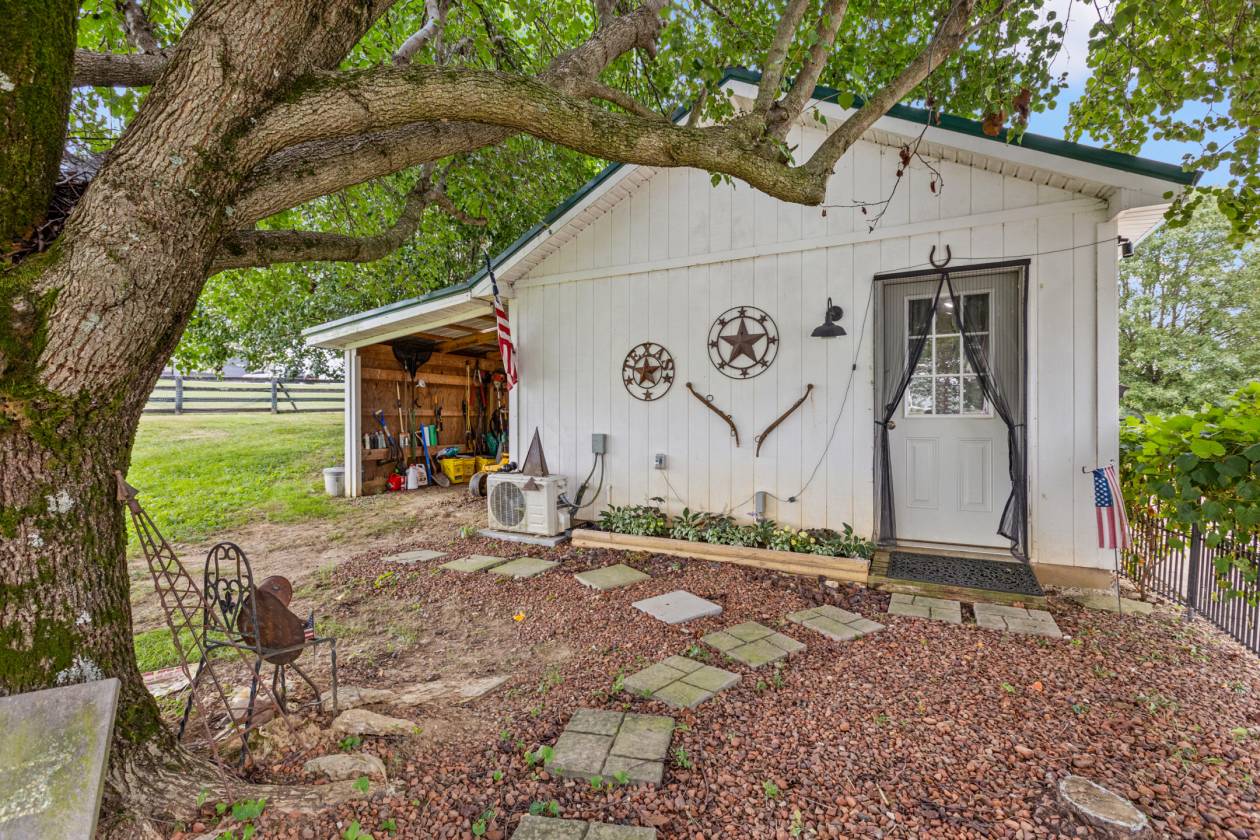 Welcome to 805 Paris Road in Mount Sterling, KY—a boutique equestrian property designed for both comfort and versatility, set on 4 acres just minutes from I-64. Easy to maintain without the need for large equipment, this two-level home offers 3 bedrooms and 2.5 baths in the main house, featuring a renovated kitchen with soft-close maple cabinetry, a 5-burner gas stove, and a cozy gas fireplace. A wraparound porch and back patio/deck provide the perfect spots to take in the views and enjoy country living. A detached building sits adjacent to the home, offering additional space that can serve as an office, recreation area, or studio, with a covered extension ideal for storing yard equipment. The property also includes a 2-bedroom, 1-bath in-law suite—perfect for multigenerational living or as a potential income-producing rental. For horse lovers, this property is well-equipped and ready for your equestrian needs. The barn features three stalls (two 12'x12' and one oversized 12'x16') with in/out access, concrete floors overlaid with rubber mats, LED lighting, and a hydrant. Outdoor riding amenities include a custom-installed 70'x90' arena and a 50' round pen, making training and exercise convenient right at home. Wood-plank fencing provides security and charm, while a custom chicken coop with run adds to the complete homestead experience. Located just 35 minutes from Lexington and I-75—and close to world-class equine facilities such as Rood & Riddle, Park Equine, and Hagyard—this property offers a rare opportunity to own a boutique horse farm without all the work. Schedule your private showing today and experience this equestrian retreat for yourself!