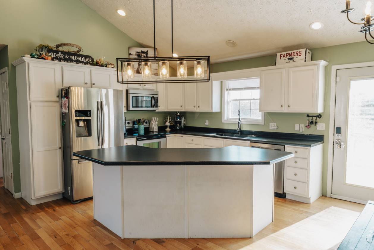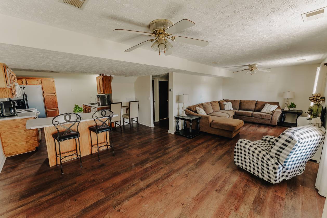 - 4-bedroom, 3-full-bath brick home, including a brand new roof! The main level features comfortable living spaces, generously sized bedrooms, and views overlooking the farm. The finished basement expands the possibilities even further, offering a complete separate living space with its own full kitchen, second laundry hookup, and direct access to a two-car garage. This setup is ideal for multi-family living, in-law quarters, guest accommodations, or staff housing—giving you flexibility no matter your needs.