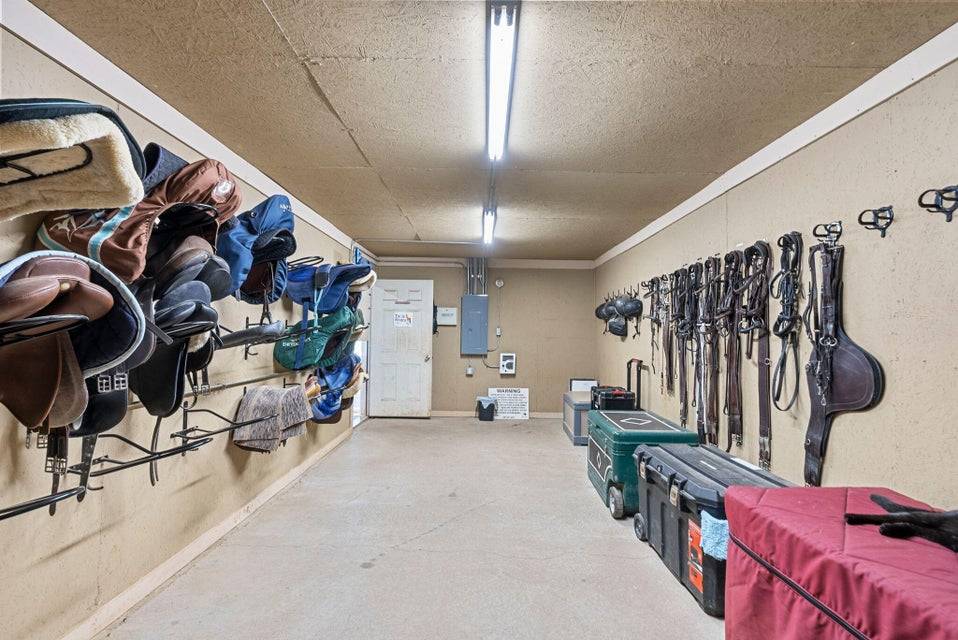 - Heated tack room and bathroom, with washer and dryer