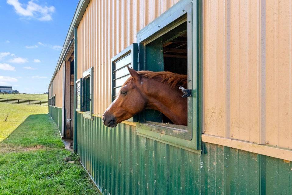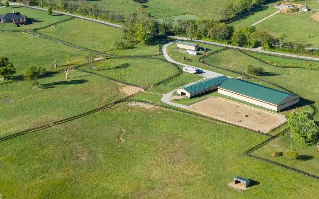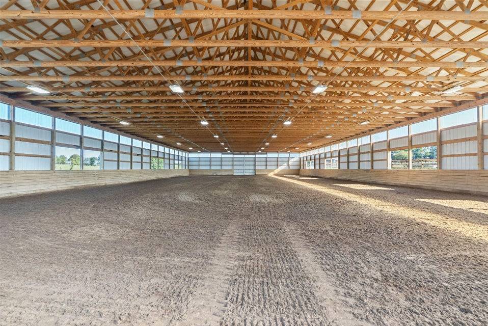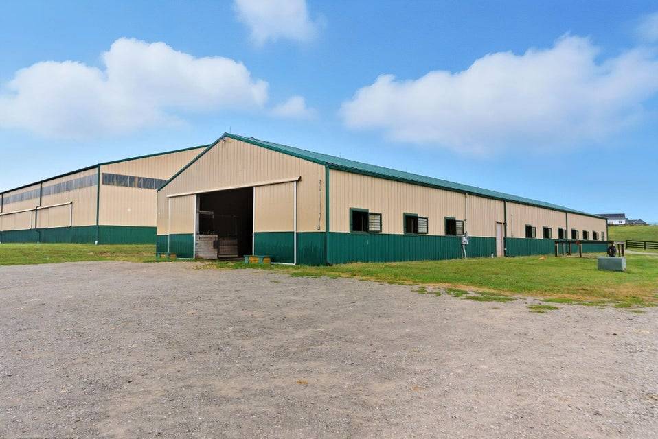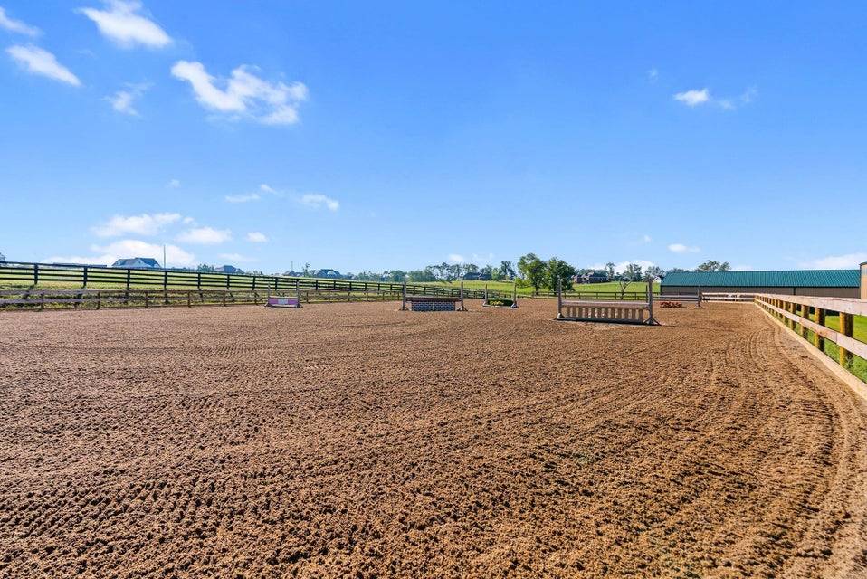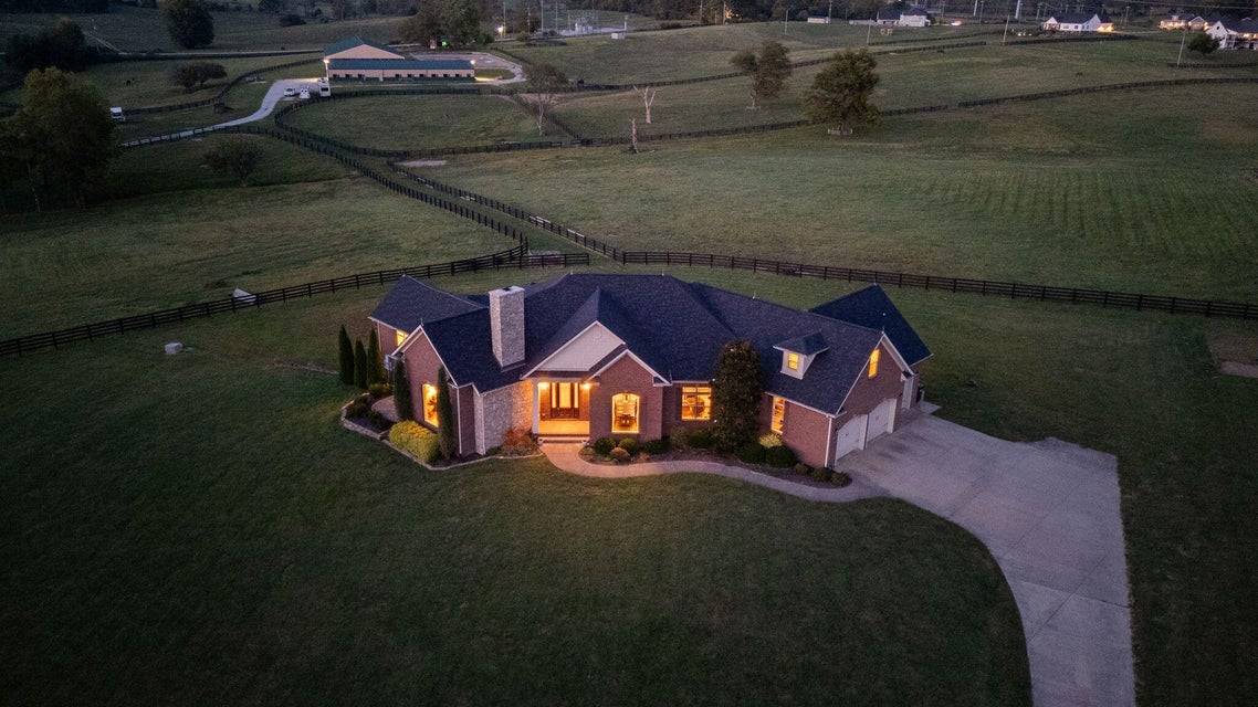 Set across 34 picturesque acres in the heart of Kentucky Horse Country, this exquisite equestrian estate offers the perfect fusion of world-class facilities and refined country living. Located minutes from the Kentucky Horse Park, this facility is designed for professional-level training and competition across disciplines. The centerpiece of the farm is a 19-stall barn featuring 12' x 12' rubber-matted stalls, tongue-and-groove wood finishes, indoor and outdoor wash bays, a heated tack room and bathroom, washer/dryer hookups, and a fully guttered drainage system. The 80' x 160' indoor arena is outfitted with premium Trutek footing and large windows that provide natural light and cross ventilation. The 100' x 200' outdoor arena was completely rebuilt in 2025 with a 7-inch crushed limestone base and 3 inches of mortar sand for exceptional drainage and rideability. Six fenced paddocks, each with individual automatic waterers, are laid out for efficient turnout and easy access to the barn. Additional facilities include a 24' x 60' equipment barn with water and electric, a run-in shed, full RV hookup, and separate utilities for the home and farm—ideal for flexible management or future expansion. Beyond the equestrian facilities, the property's custom five-bedroom home features a walk-out basement, home theater, and expansive living spaces with sweeping views of the pastures, offering the perfect blend of comfort and functionality. Located in one of the most desirable equestrian regions in the country, this property is perfectly suited for professionals, competitors, or discerning enthusiasts seeking a turnkey facility with close proximity to top-tier events, veterinary services, and training circuits.