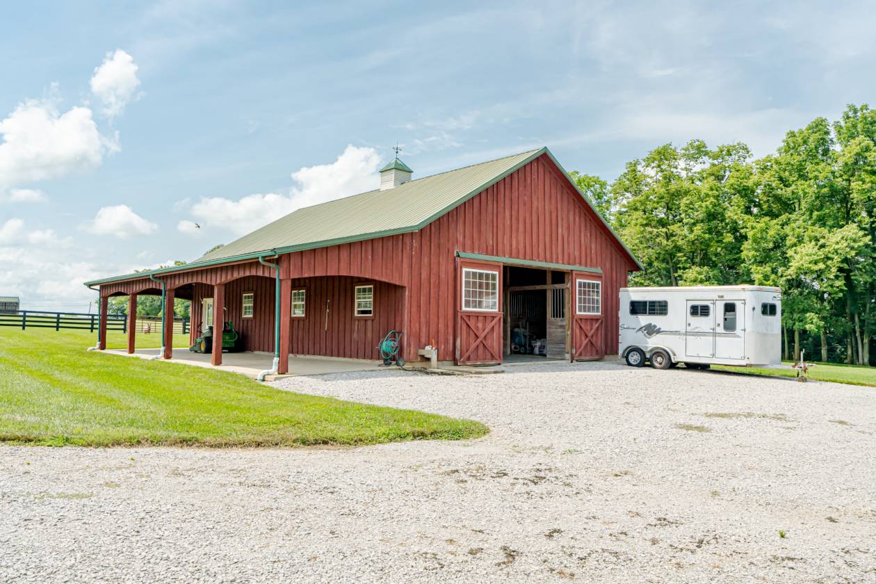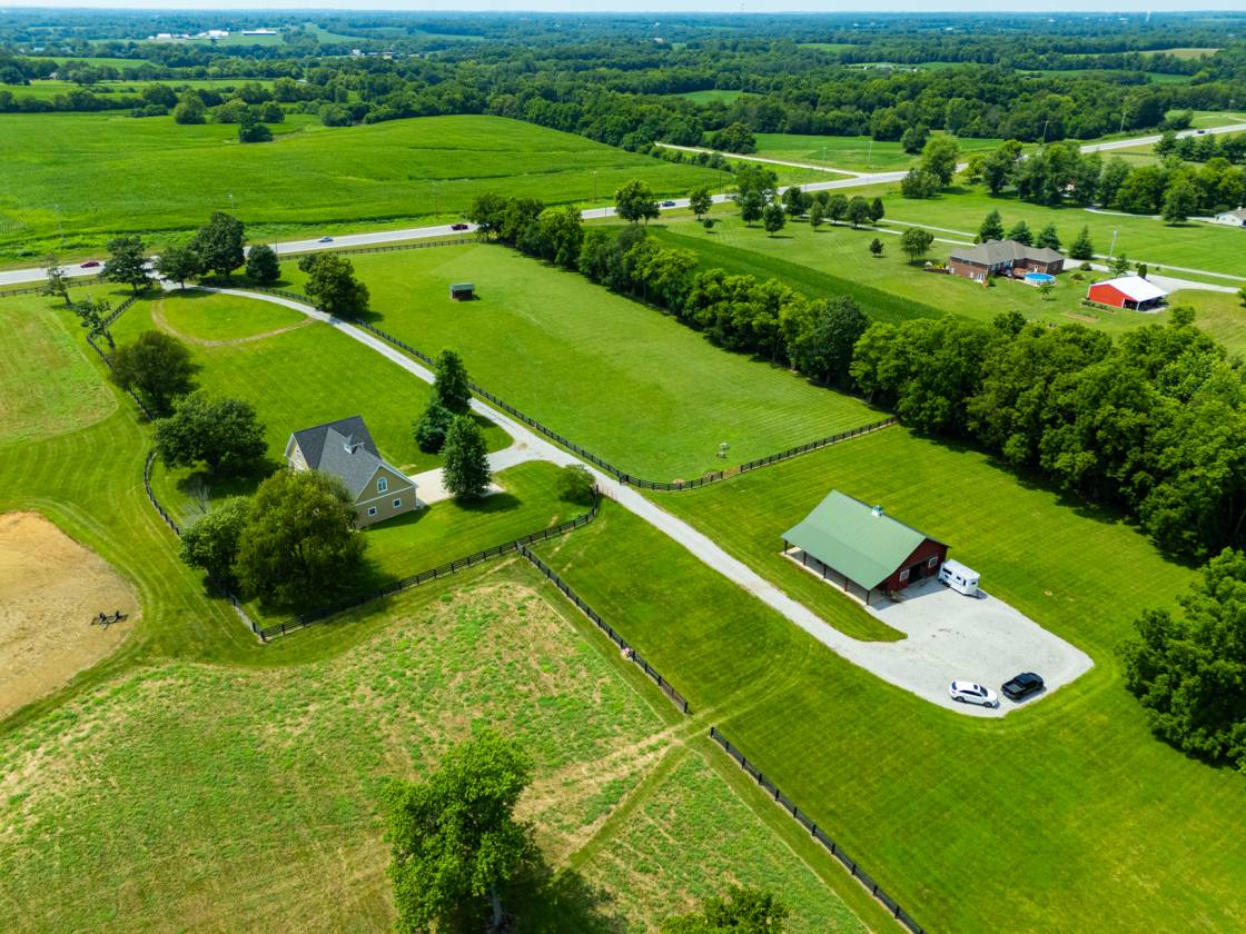 Welcome to convenient country living just minutes from downtown Shelbyville, Louisville and Frankfort! This meticulously maintained 2-bedroom, 1.5-bath with heated oversized 3-car garage home offers 2,364 sq ft of comfortable living space nestled on 15.63 fully fenced and cross-fenced acres—a true turnkey property for horse lovers, hobby farmers, or those seeking peaceful, private surroundings. Fencing is in great order and there are automatic waterers that service three separate areas. Two large run-in sheds provide cover for your valued friends. Whether you're starting your homestead or expanding your equestrian setup, 4525 Eminence Pike is a rare blend of comfort, convenience, and functionality—all within a serene, rural setting.