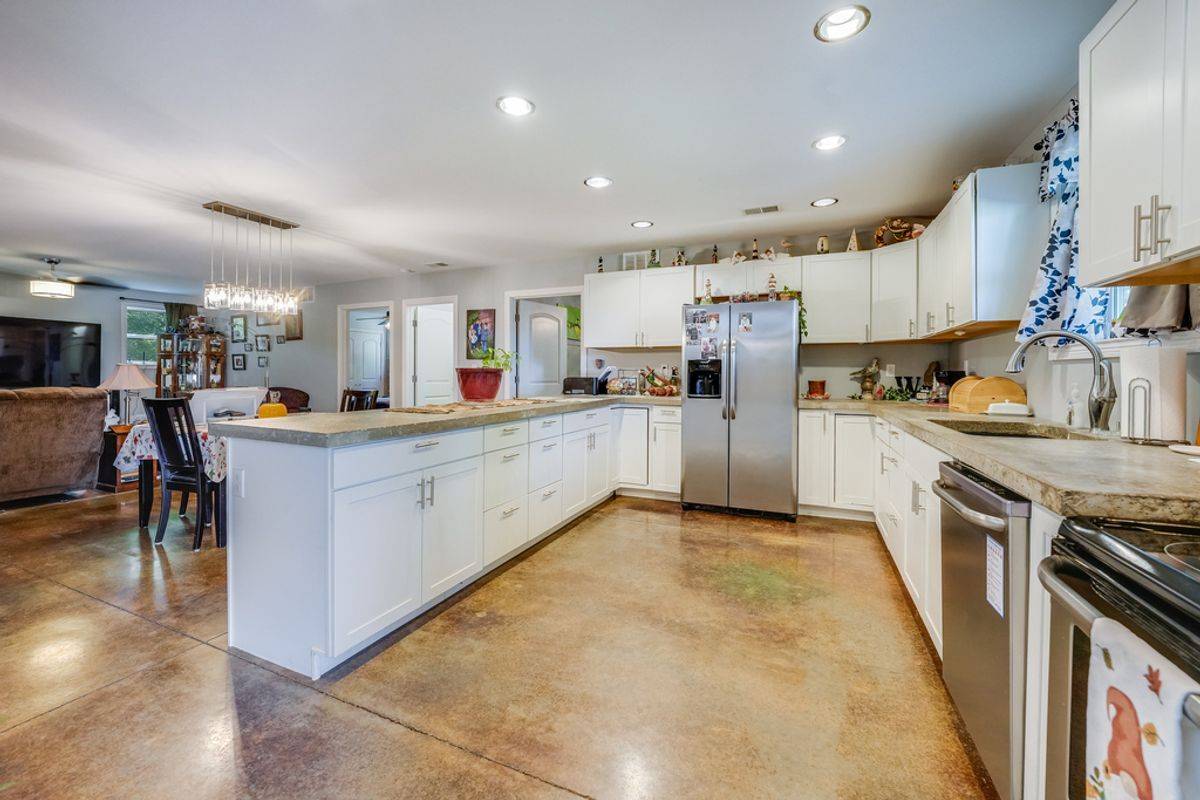 - A spacious main residence anchors the property with 4 bedrooms, 3 baths, and a bright, open layout centered around a heated in-ground saltwater pool. The separate barndominium serves as the guest house, offering 2 bedrooms and 2 full baths with its own private living space. Together, the two homes create an incredibly flexible setup for multi-generational living, hosting, or rental potential. Opportunity is still there to build an additional home on the property.