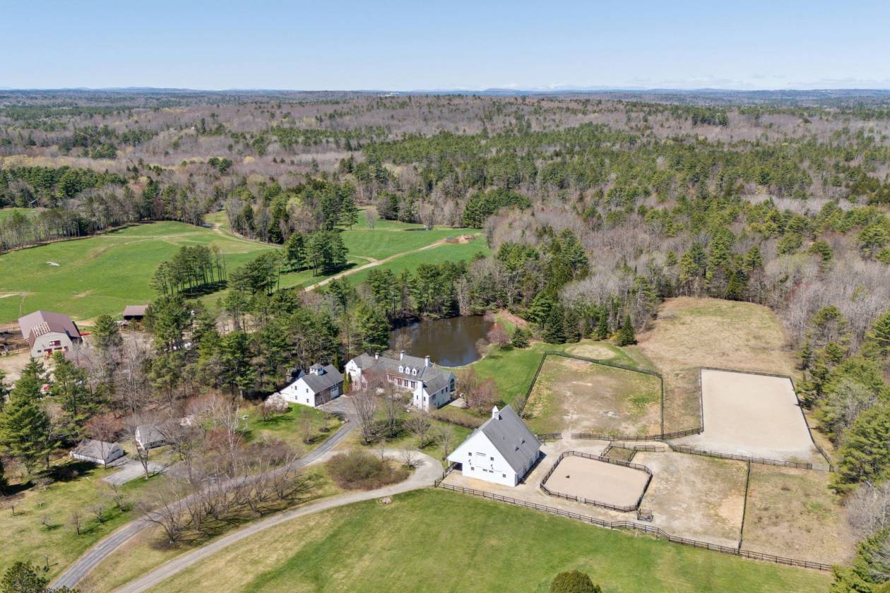 Set in a bucolic countryside setting, this exquisite 21 acre equestrian estate was designed for those with a discerning eye and an appreciation for exceptional quality, design and detail. The immaculately maintained 6600nsq ft main house, designed by renowned architect Christopher Glass, overlooking a secluded pond and beautiful fields, contains a well appointed chef's kitchen, a stunning great room, library, sunroom, 1st floor en suite master bedroom with a total of 4 bedrooms and 3.5 bathrooms. An elevator, vaulted ceilings, beautiful architectural finishes, ample natural light, wine storage, multiple fireplaces, balcony library, and upper level stone terrace and lower level patio complete this magnificent home. Next to the main house is a significant carriage house, with a second floor finished space that would make an excellent home office and/or yoga studio and a cupola with seating offering views of Mount Washington and more. The guest cottage, with its own garage, offers privacy and contains a beautiful open concept living area with exposed beams and hardwood floors throughout, a lovely gas burning stove, beautiful built-ins and a second floor bedroom and full bathroom. The immaculate stable offers five 14'x14' stalls, with shedrow overhang containing turnouts, ample hay storage, grain room, heated tack room with laundry and bathroom connected to multiple paddocks and abuts a top of the line lunging/training arena. From the stable, follow the alley to the Olympic level riding arena with imported European footing to complete this horse lovers paradise. Nestled along the East Branch of the Royal River, this truly amazing property also offers rolling fields, trails and a large pond that extends from main house to the guest cottage. In close proximity to Bradbury Mountain State Park, an 18 hole golf course and ideally located just 20 minutes North of Portland.