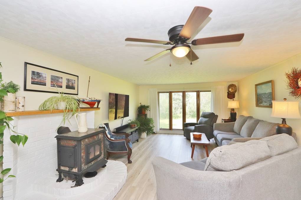 Bangor Executive 3 Bedroom Ranch with additional dedicated office suite on 27+ Acres - A Private Retreat Minutes from Town Welcome to your dream property! This executive-style 3 bedroom, 2-bath ranch features as a dedicated office/craft room ensuite, oversized garage, and over 27 acres of beautiful, private land. A cut trail and open fields connects directly to the local snowmobile trail system, offering four-season outdoor enjoyment right from your doorstep. Inside, the home boasts large, well-appointed rooms and a bright four-season sunroom perfect for relaxing or entertaining. The heart of the home is a stunning cherry kitchen, complete with laminate countertops and stainless steel appliances - a chef's dream that blends beauty and function. A cozy wood stove adds warmth and charm, while the open layout offers both comfort and flow. The land is rich with established gardens, including high bush blueberries, asparagus, rhubarb, and raised garden beds - ideal for gardening enthusiasts or those seeking a sustainable lifestyle. Enjoy the peace and quiet of country living while being just minutes from shopping, hospitals, universities, and more.