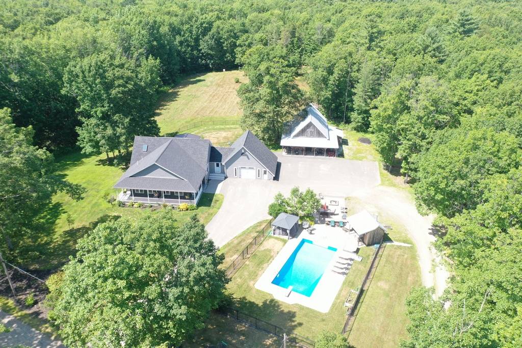 Work well...live well on your dream homestead on 10 acres. Split into two perfectly utilized 5-acre parcels. The first parcel features a custom cape-style home with a timeless wrap-around porch and farmhouse charm. This 3-bedroom, 3-bath home includes a luxurious primary suite with a state-of-the-art bath—featuring a soaking tub, double oversized tile shower, radiant heat, and an infrared sauna. Inside, you'll also find a dedicated office, playroom, full finished basement, and functional spaces like a large laundry room and a custom mudroom off the attached, finished garage. Step outside to your private outdoor oasis with an 18 X 36 heated pool, ideal for relaxing or entertaining. The property is fully set up for hobby farming or equestrian life with a horse barn (including tack area and hay loft), a chicken coop, and a fenced backyard. Across the way, the second 5-acre parcel is tailored for work and recreation. A 50x50 fully insulated, heated shop provides ample space for projects or business use with a solar array producing 23-26 MWH per year to power this estate.