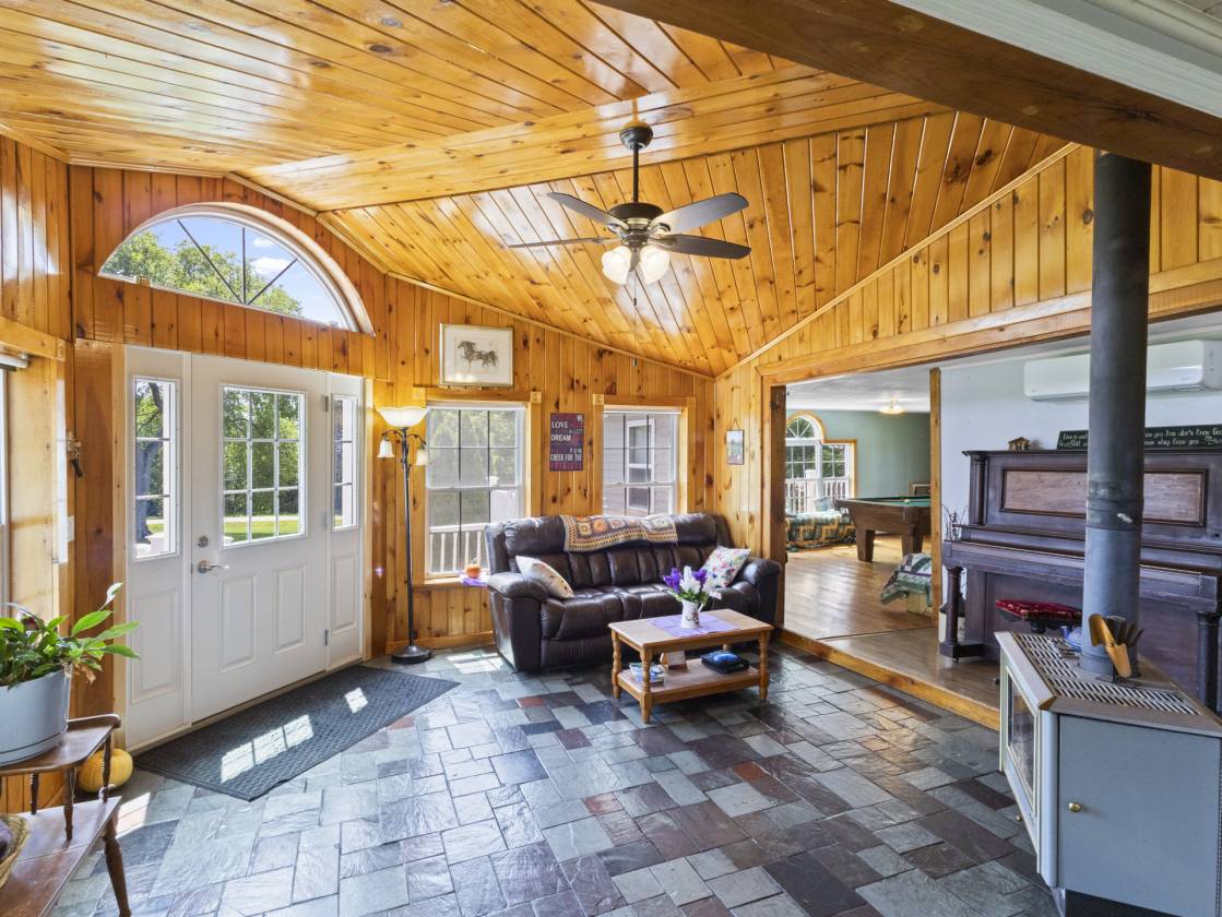 Spacious 4-bedroom, 2-bath ranch with over 2,500 sq. ft. of living space featuring knotty pine accents, abundant natural light, and a modern primary suite. The open kitchen includes white cabinetry and a center island. Outside, enjoy a productive orchard, open lawn, and full equestrian setup with a 36x36 barn (4 stalls, dedicated well), additional in-and-out barn, fenced pasture, and riding arena. A heated 4-car garage, woodshed, and multiple efficient heating systems add to its practicality. Just 10 minutes from Dover-Foxcroft, this move-in ready home blends comfort, functionality, and peaceful country living.