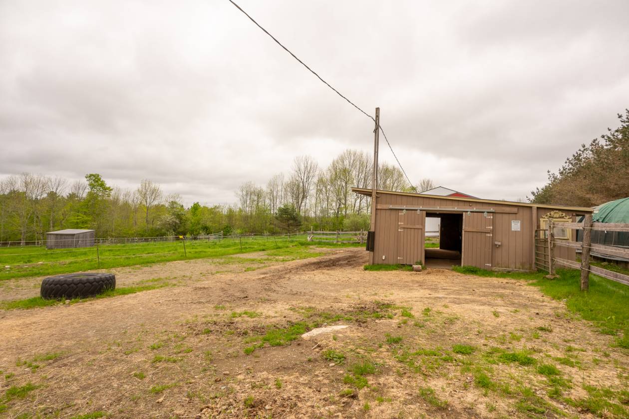 Nestled on 31+/- acres along quiet, town-maintained Choate Road, this Montville property offers the perfect blend of open fields, fruit trees, woodlands, and even a trout-stocked pond, creating a setting that feels both peaceful and full of opportunity. At its heart stands a fully restored 1835 farmhouse, thoughtfully relocated to its current full foundation in 1988. Facing south, the home is filled with natural light and showcases bonus mountain views. Inside, you'll find 3 bedrooms, 1.5 baths, warm wood floors, a cozy wood stove, and charming built-ins that highlight its timeless character. Two additional flexible rooms provide space for offices, guest accommodations, or creative pursuits, with further potential in the basement. Equestrians will appreciate the newly constructed 72' x 60' indoor riding arena, attached to a 48' x 36' barn with three framed stalls, two tack or meeting rooms, a wash station, and room to expand. But the appeal doesn't end there - this impressive structure can easily adapt to your vision, whether for boat or RV storage, vehicles, workshops, or even an event barn. Adding to the versatility are multiple outbuildings: a 20' x 30' barn, 12' x 12' storage shed, fabric-covered shelters, a one-bay pole barn garage, and fenced pastureland. This is more than a property - it's a lifestyle canvas. From horses to homesteading, from quiet mornings on the patio to lively gatherings under the open sky, this Montville estate offers endless possibilities in one of Midcoast Maine's most peaceful settings.