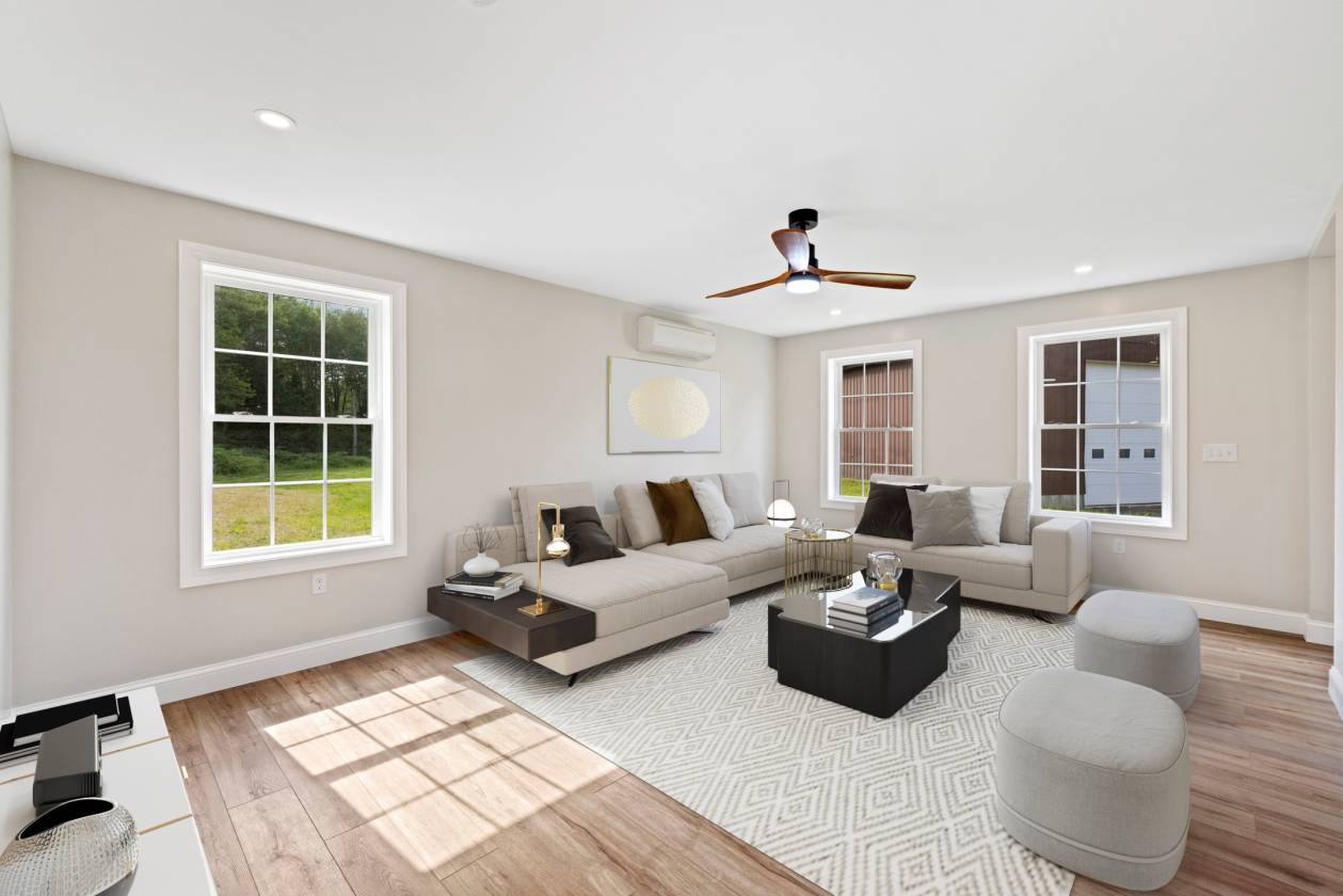 The brand-new 4-bedroom, 2.5-bath Colonial is move-in ready and packed with thoughtful upgrades, including energy-efficient heat pumps throughout and a gourmet kitchen with quartz countertops. The open-concept layout, attached 2-car garage, backyard patio, and built-in firepit offer modern living with a touch of country charm.