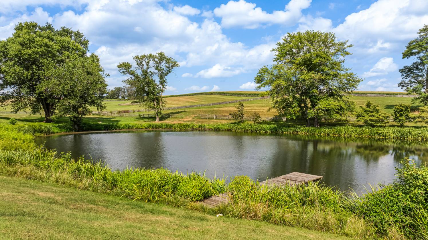 - Pond with small wooden pier
