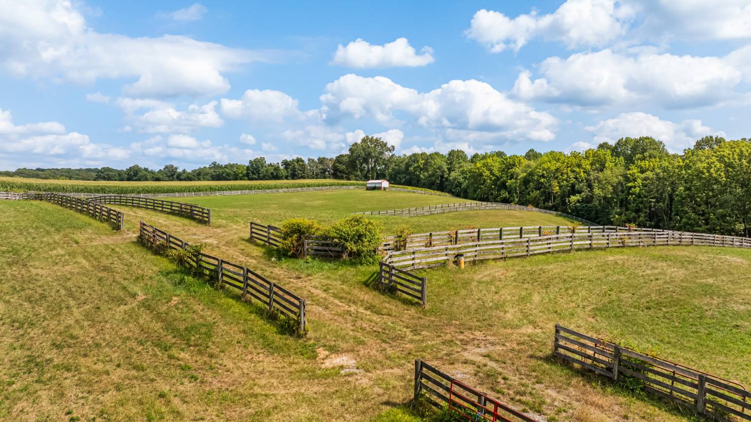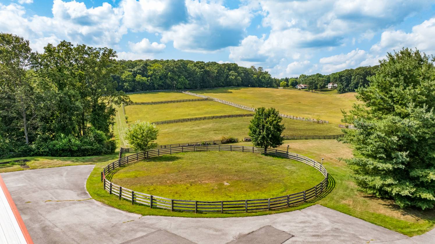 - Yard with rubber surface horse training runway and fenced riding ring