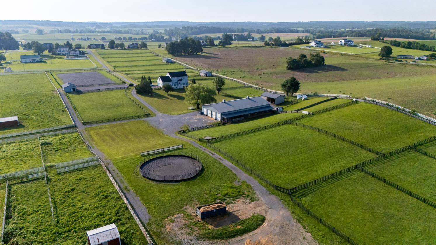 Price reduction! Offered in scenic Union Bridge, this 14.57-acre turnkey horse property is thoughtfully designed for ease, efficiency, and equine comfort. Set among working farms in Frederick County, this facility is ideal for private use or a boutique training and boarding operation. The farm features three 3-stall (12x24') barns, each with individual run-outs and heated Nelson waterers, 16 paddocks with 4-board flex fence and electric, a Priefert round pen and 100' x 200' arena with bluestone footing. The main barn offers 20 matted stalls (13 small, 3 oversized 14x14', and 4 12x12'), heated Nelson waterers, and practical amenities throughout. A large matted wash stall with hot/cold water and swing arm, heated tack room, heated office/lounge, full bathroom, laundry room, 3-bay equipment shed, fully outfitted vet clinic and RV hook-up round out the features of this well-equipped property. The 3-bedroom, 4-bath Colonial-style home with over 4,000 sq ft of living space includes a private garden apartment–perfect for guests or staff. The sizable living room with pellet stove and three walls of views greets you and opens to a large entertaining area that meets the kitchen. Cooks will be pleased with the Viking appliances and two pantries. The mudroom with wash sink and a half bath are conveniently located just inside the garage entrance for when you return from the barn. A huge laundry room on the bedroom level and expansive primary suite with dreamy walk-in closet and dressing area are an owner's oasis. The wraparound porch and deck provide scenic views of the paddocks and landscape, while the gated driveway with keypad entry adds security for residents and horses alike. Book a tour today to experience all that this property has to offer!