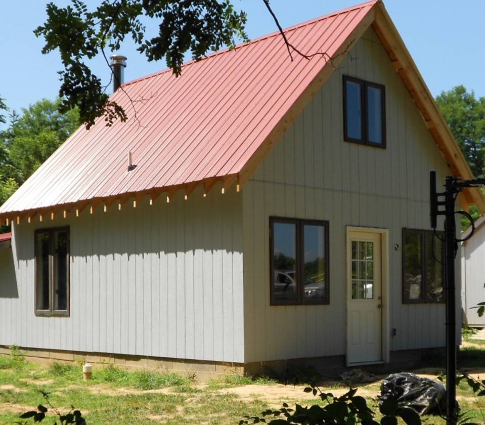 - With its steep pitch hip roof, catslide roof slope on one end, tall chimney, and enclosed front entry, Highfield is definitely reminiscent of the vernacular farmhouses of Suffolk County, England where they visited often.