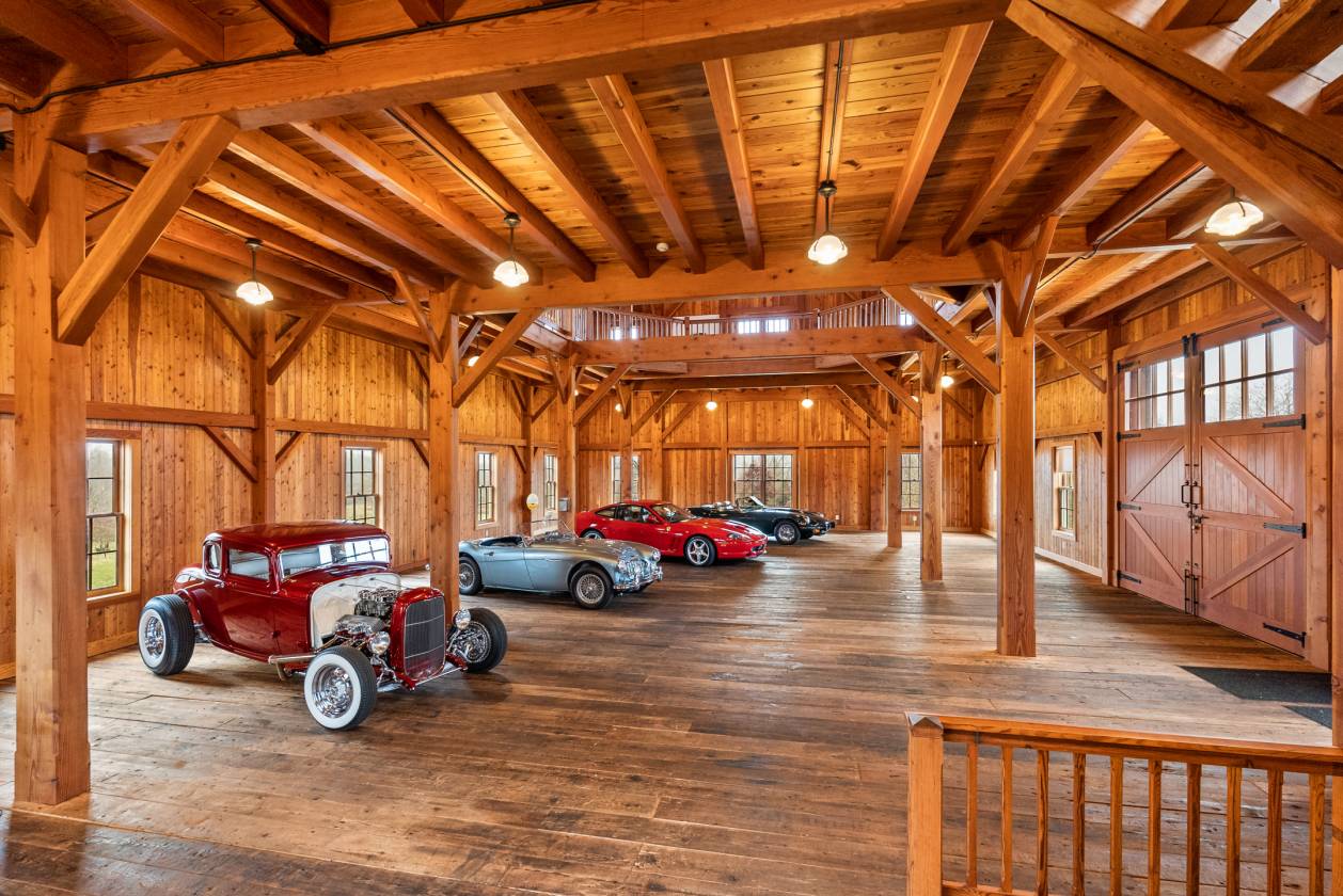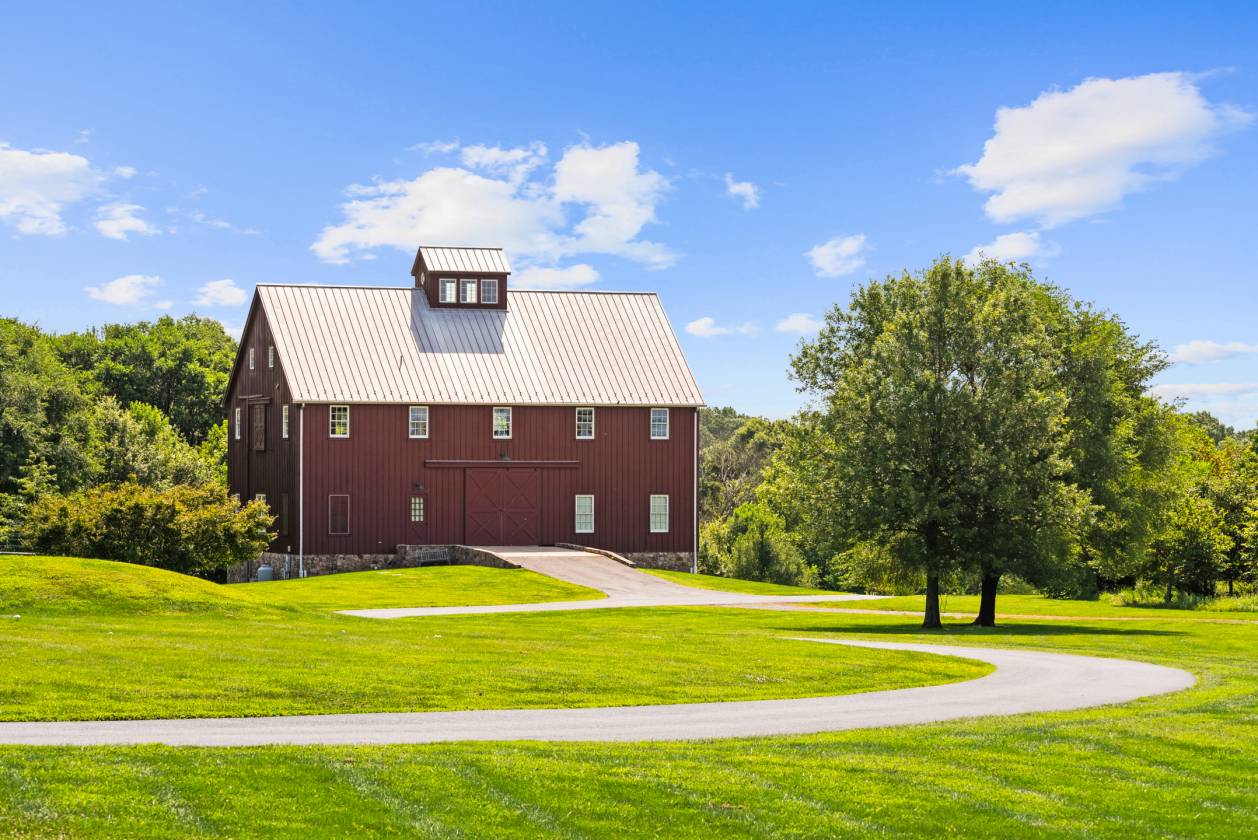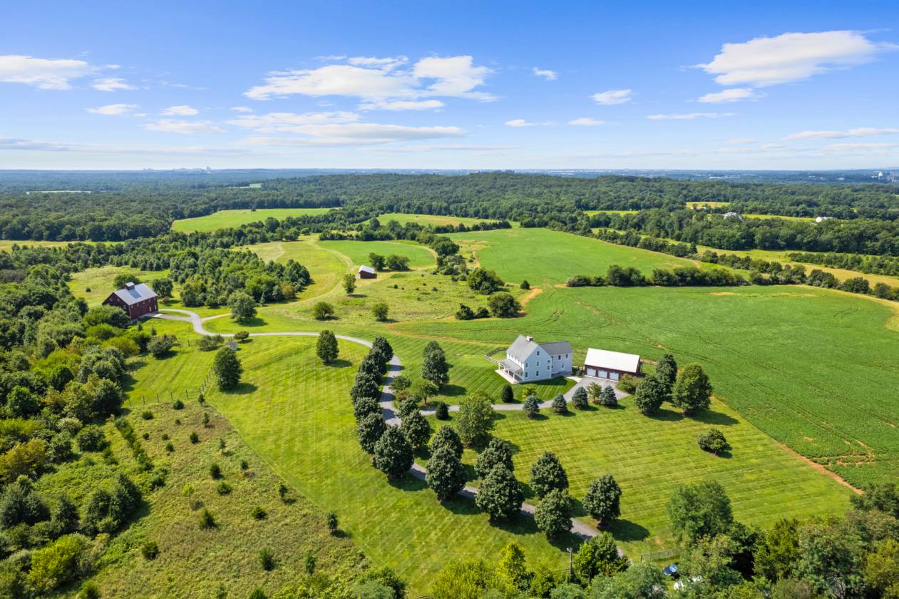 Stoney Springs Farm, a rare and extraordinary offering of 315+/- acres crafted for car collectors, hunters, equestrians, and agritourism visionaries alike. Just 30 miles from Washington, DC, the property commands breathtaking panoramic views stretching from Sugarloaf Mountain to downtown Bethesda. For car enthusiasts or large-scale entertaining, the centerpiece is a masterfully BOWA built, timber-framed bank barn. Spanning 8,200 square feet on three secure and climate-controlled levels, it features Douglas Fir beams and flooring, commercial-grade capability including a chain hoist and hydraulic lift, a full kitchen with high end appliances, 1.5 baths, and the infrastructure to showcase and care for a collection of up to 20 exotic cars. This estate also caters to the huntsman, offering mature woods, open fields, and strategically placed stands and food plots creating exceptional habitat and trophy opportunities. The custom built, 4-bedroom, 3.5 bath colonial farmhouse is comprised of 4,800 finished square feet and features a coveted main level primary bedroom suite, a gourmet quintessential country kitchen with top-of-line appliances, gorgeous, reclaimed oak floors, custom millwork, an oversized and versatile upper bonus room with rear staircase, inviting front and rear covered porches offering tranquil vista and spectacular sunsets, and is equipped with Geothermal HVAC. Completing this exceptional property is a detached three-car garage with workroom and covered porch, and a substantial and functional four-bay agricultural building. There are two high-producing wells, multiple productive crop fields and cultivable land, and is perc approved for an additional 6-bedroom house. Nationally ranked Poolesville High School and quaint downtown Poolesville with an array of restaurants are within three miles. Thoughtfully designed and built from the finest materials with two distinct visions, this incredible and vast property now invites a new owner to write the next chapter. This is more than real estate – it’s an opportunity to curate your own recreational oasis and enduring legacy.