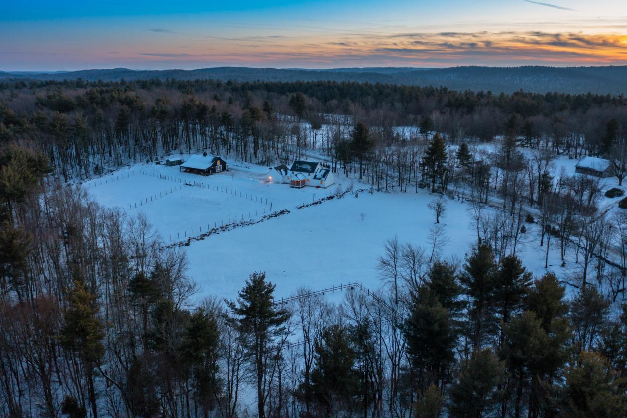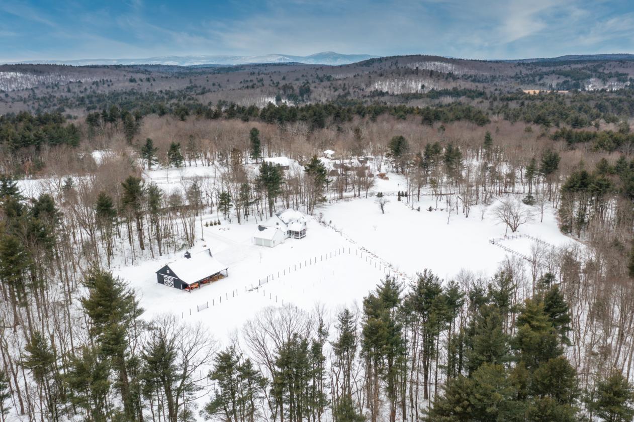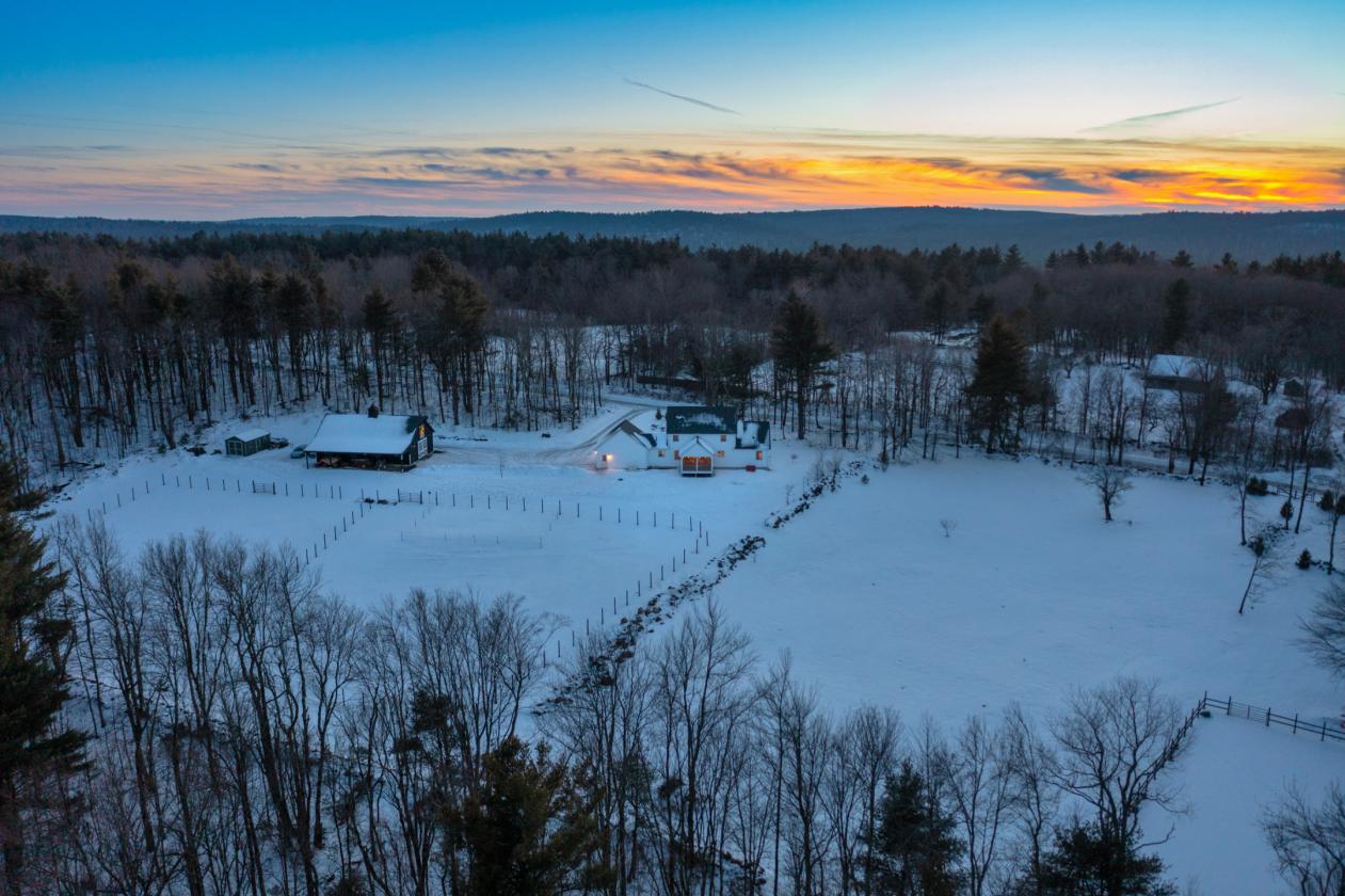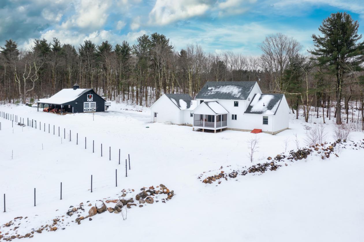 Discover the ultimate convergence of solitude and sport. Set upon a staggering 78.53-acre canvas with over 2,300 feet of road frontage, this pristine 2022 Custom Colonial Farmhouse offers a lifestyle often sought but rarely found: new construction reliability within a historic, whisper-quiet landscape. A Turnkey Equestrian Property Designed for the serious horse owner, the infrastructure is engineered to the highest standards. The property centers around a 2022-built, 30'x48' barn that is a marvel of utility. Stabling: Four 10'x12' stalls, each equipped with electricity. Care: A heated tack room, feed room, and a wash stall with hot water. Training: A professionally graded 60'x120' sanded riding ring, multiple cleared pastures, plenty of potential for woodland trails. Turnout: Dedicated grazing paddocks framed by historic stone walls dating back to the 1800s. Storage: A massive loft capable of holding 1,000 hay bales and a 10-foot overhang for dry machinery storage. The Residence: Modern Farmhouse Efficiency The interior is defined by clean lines, natural light, and a design philosophy that connects you to the animals outside. The heart of the home is a chef's kitchen featuring honed soapstone countertops, custom cabinetry, and a full suite of Bosch stainless steel appliances. This space flows into a living room anchored by a gas fireplace, but the true highlight is the sprawling screened-in porch. From here, you enjoy the property’s best vantage point: overlooking your riding ring and paddocks with your morning coffee. Designed for longevity, the home offers true single-level living. The first-floor primary suite features an expansive walk-in closet and en-suite bath. Upstairs, a versatile loft separates two generous guest bedrooms. The Land: Your Private National Park Beyond the barn, the acreage is a masterpiece of natural beauty. The landscape unfolds in a series of sun-drenched pastures, babbling brooks, and a tranquil pond. With 78+ acres at your disposal, you can groom private trails for trail riding, ATVs, or cross-country skiing without ever leaving your driveway. Systems & Location: Every detail ensures rural resilience. The estate is backed by a whole-home Generac generator that services both the residence and the barn. An attached, insulated 2-car garage leads directly to the mudroom. Located in Sandisfield, you are surrounded by protected forests yet within striking distance of Great Barrington dining and Tanglewood. Situated in the winter sports "sweet spot"—20 minutes to Otis Ridge and a short drive to Ski Butternut—and equidistant (2.5 hours) from NYC and Boston. Secure your legacy in a home where the amenities are modern, but the peace is timeless.