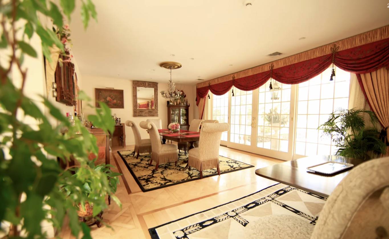 - Arched pass through b/tw kitchen & DR—w/ custom, leaded-glass, lighted cabinets.