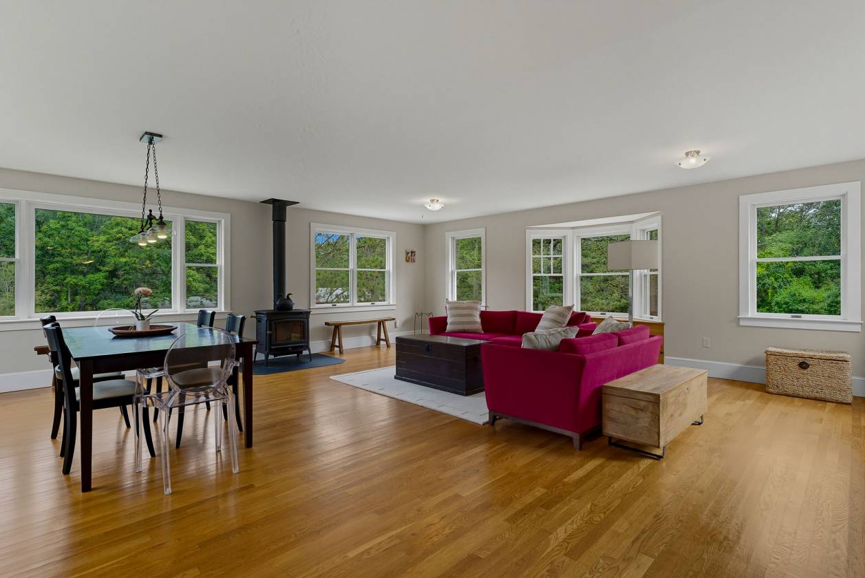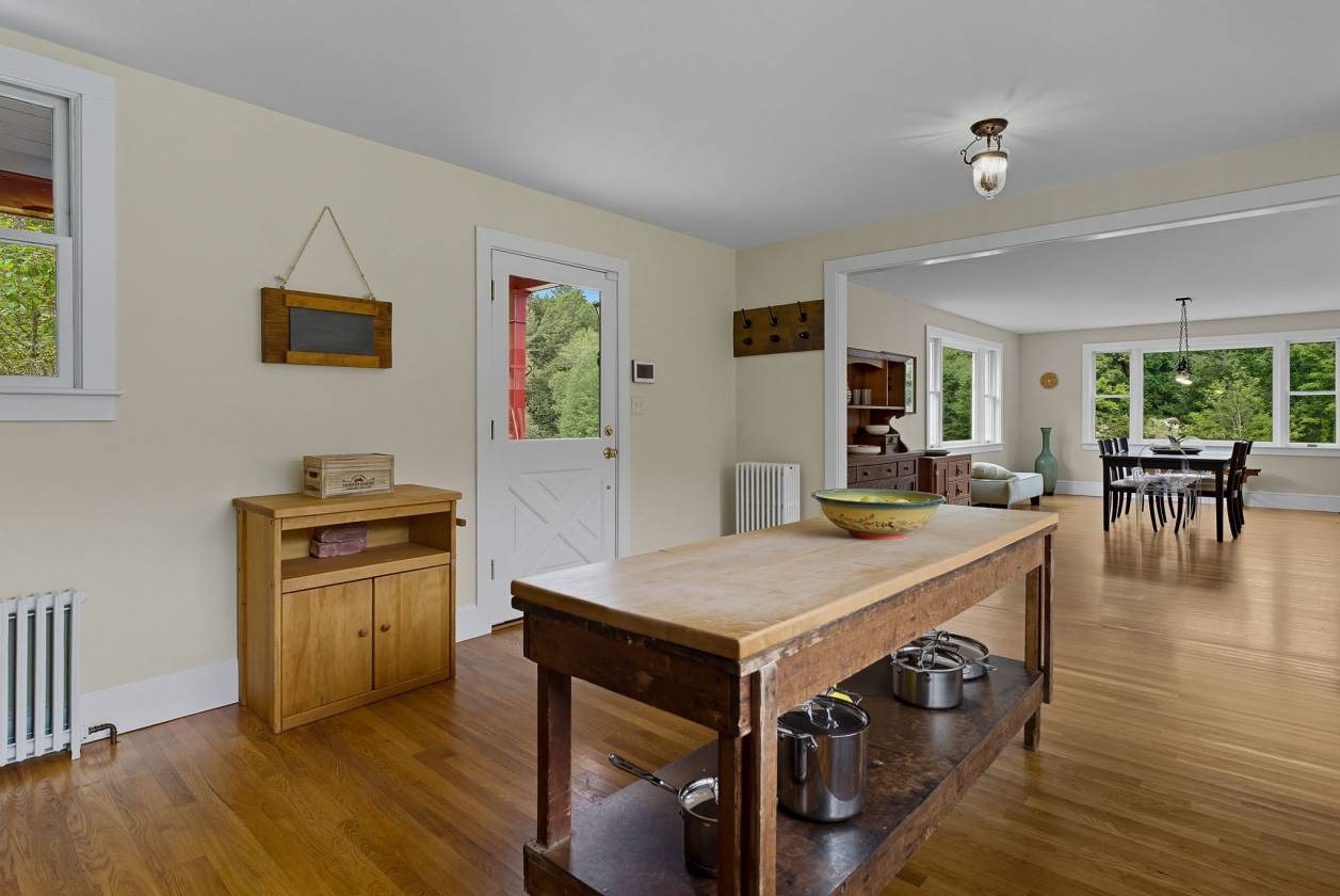 Set back on a quiet country road, this beautifully renovated 3,942 sq. ft. farmhouse is surrounded by meadows, woodlands, and a tranquil private pond. At the heart of the property is the iconic red barn, fully equipped with water and electricity—ready for horses, chickens, or hobby farming.