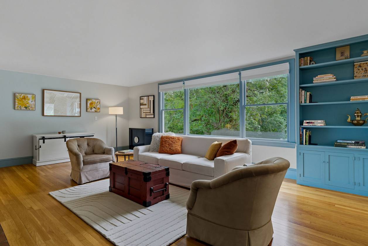 Inside, the home has been meticulously upgraded—from a chef’s kitchen with handcrafted cabinetry and premium appliances to spa-like baths, Andersen windows, and advanced heating/cooling systems. The flexible floor plan includes four bedrooms, three and a half baths, and a versatile wing that could serve as guest quarters, office space, or staff accommodations.
