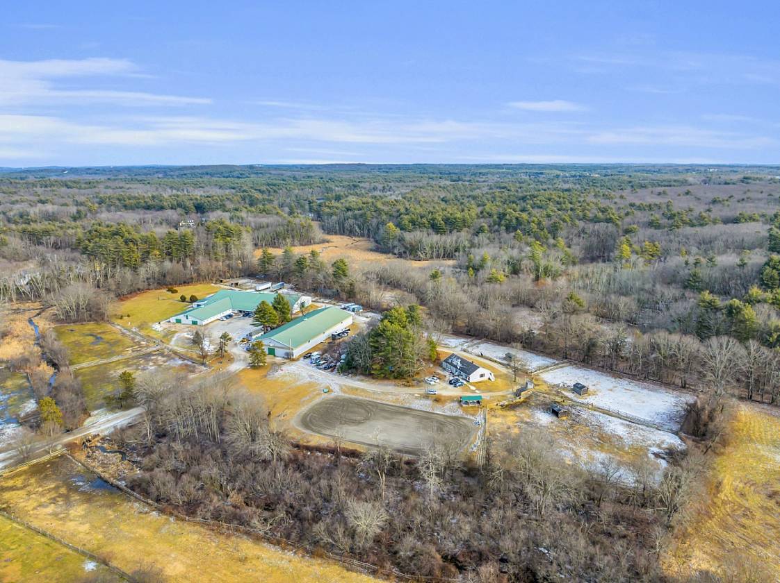Cavallo Equestrian Center is a well-established equine facility offering exceptional amenities for both horse and rider. The property includes 45 stalls, two 80’x200’ indoor arenas with premium GGT footing—one heated—and a 100’x200’ outdoor ring with sand and stone dust footing. All arenas are professionally serviced and leveled annually. The main barn features two tack rooms, two grain rooms, multiple wash stalls. Enjoy watching lessons in a large heated lounge/kitchen with adjoining office and bathroom—ideal for riders and guests. Sixteen turnout paddocks of various sizes, several with run-in sheds, provide flexible turnout options. Cavallo operates as a successful boarding and training facility, known for hosting clinics, IEA shows, and equestrian events for decades. A 3-bedroom, 3-bathroom Ranch-style home is included— suitable for an owner, trainer, or manager. Conveniently located near Routes 495 and 2, approximately 20 minutes to the NH border and 45 minutes to Boston.