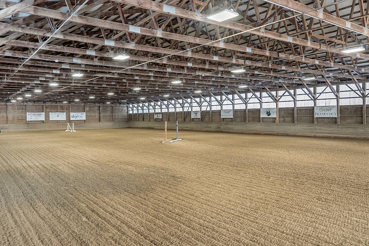 Cavallo Equestrian Center is a well-established equine facility offering exceptional amenities for both horse and rider. The property includes 45 stalls, two 80’x200’ indoor arenas with premium GGT footing—one heated—and a 100’x200’ outdoor ring with sand and stone dust footing. All arenas are professionally serviced and leveled annually. The main barn features two tack rooms, two grain rooms, multiple wash stalls. Enjoy watching lessons in a large heated lounge/kitchen with adjoining office and bathroom—ideal for riders and guests. Sixteen turnout paddocks of various sizes, several with run-in sheds, provide flexible turnout options. Cavallo operates as a successful boarding and training facility, known for hosting clinics, IEA shows, and equestrian events for decades. A 3-bedroom, 3-bathroom Ranch-style home is included— suitable for an owner, trainer, or manager. Conveniently located near Routes 495 and 2, approximately 20 minutes to the NH border and 45 minutes to Boston.